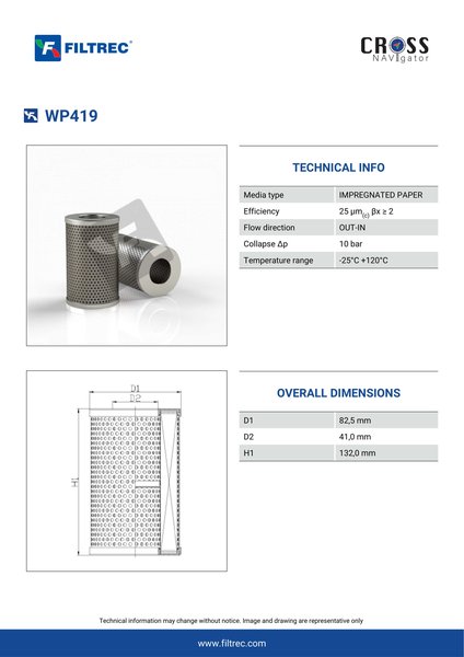 Genuine Filtrec WP419. This Filtrec element is designed to meet or exceed the quality and performance of brand OEM’s ensuring superior filtration performance and long-lasting durability.