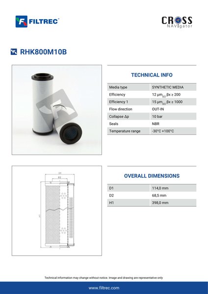 Engineered with their high performance media and a durable design, the RHK800M10B provides reliable and consistent performance over its lifespan, even in harsh operating environments. When you order from FilterFinder, you can trust that you are getting a reliable and high-quality replacement filter that will keep your system running smoothly.