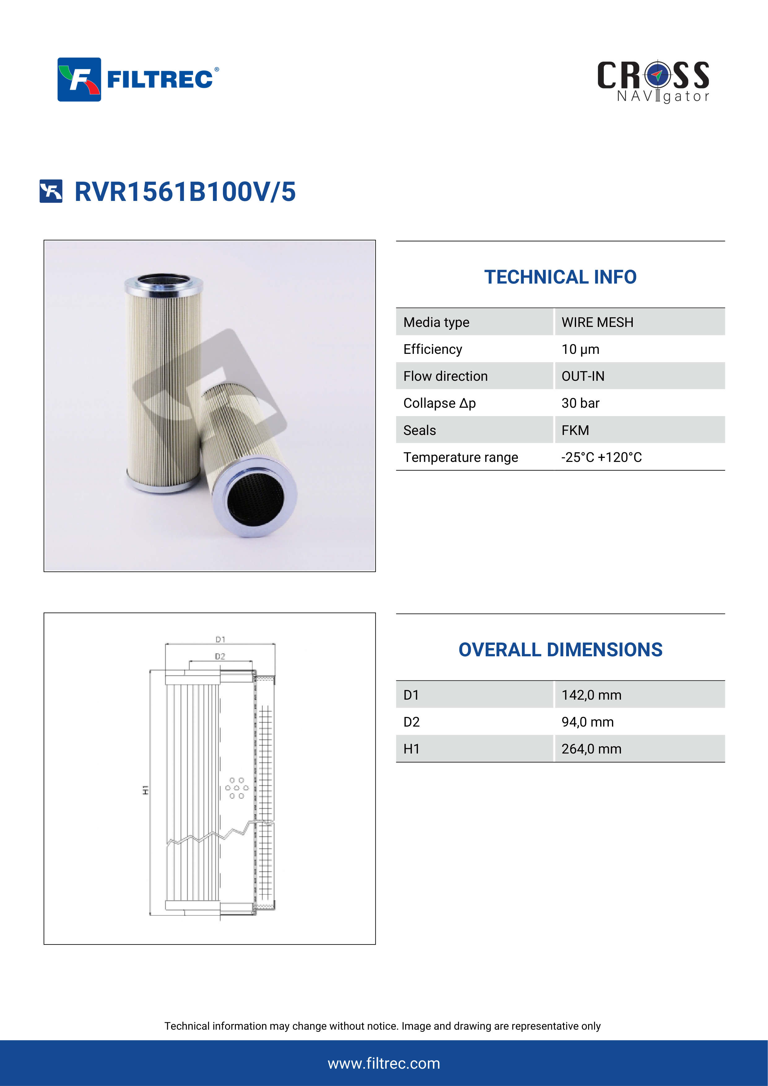 Genuine Filtrec RVR1561B100V/5. This Filtrec element is designed to meet or exceed the quality and performance of brand OEM’s ensuring superior filtration performance and long-lasting durability.Engineered with their high performance media and a durable design, the RVR1561B100V/5 provides reliable and consistent performance over its lifespan, even in harsh operating environments. When you order from FilterFinder, you can trust that you are getting a reliable and high-quality replacement filter that will keep your system running smoothly.