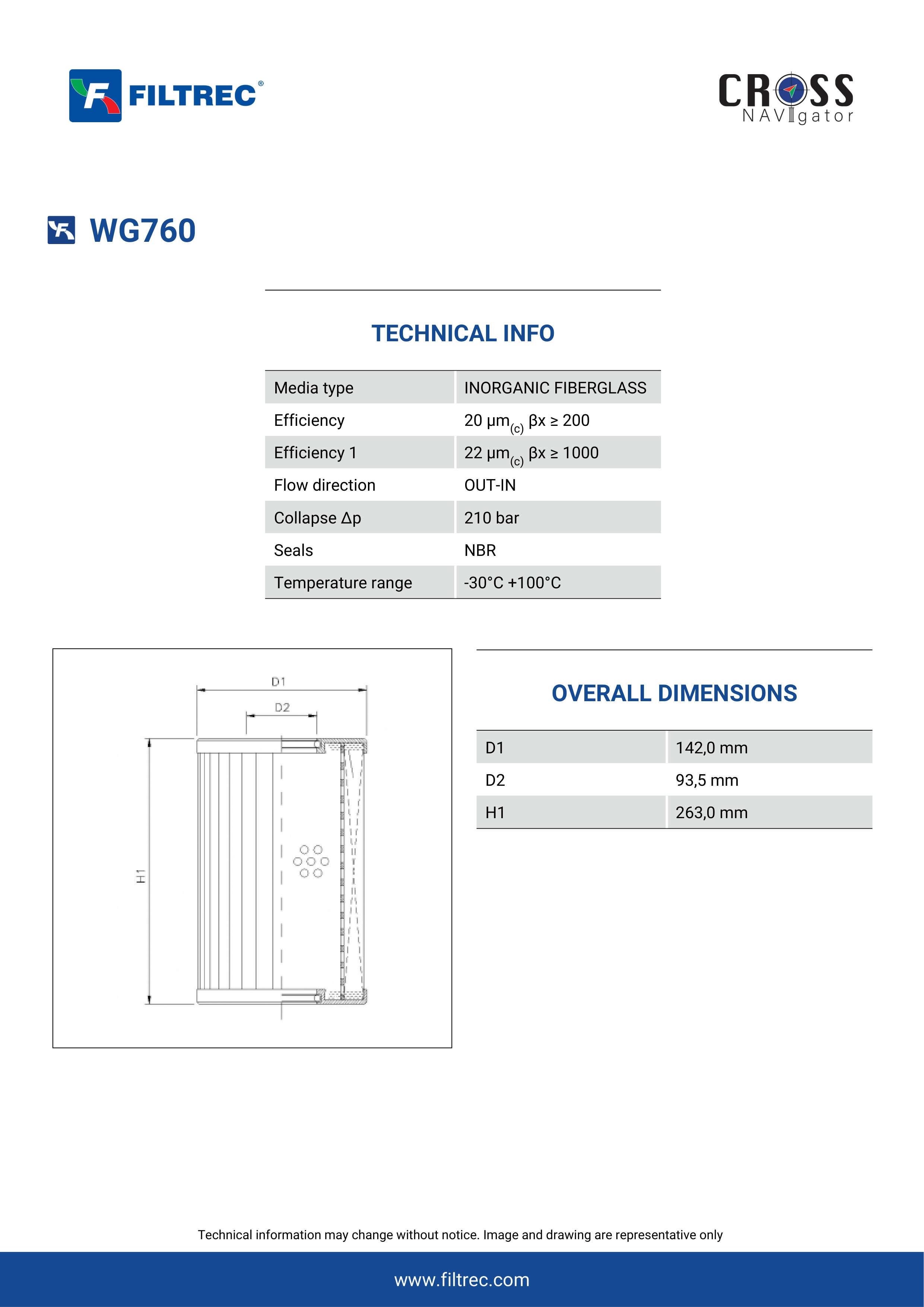 Genuine Filtrec WG760. This Filtrec element is designed to meet or exceed the quality and performance of brand OEM’s ensuring superior filtration performance and long-lasting durability.