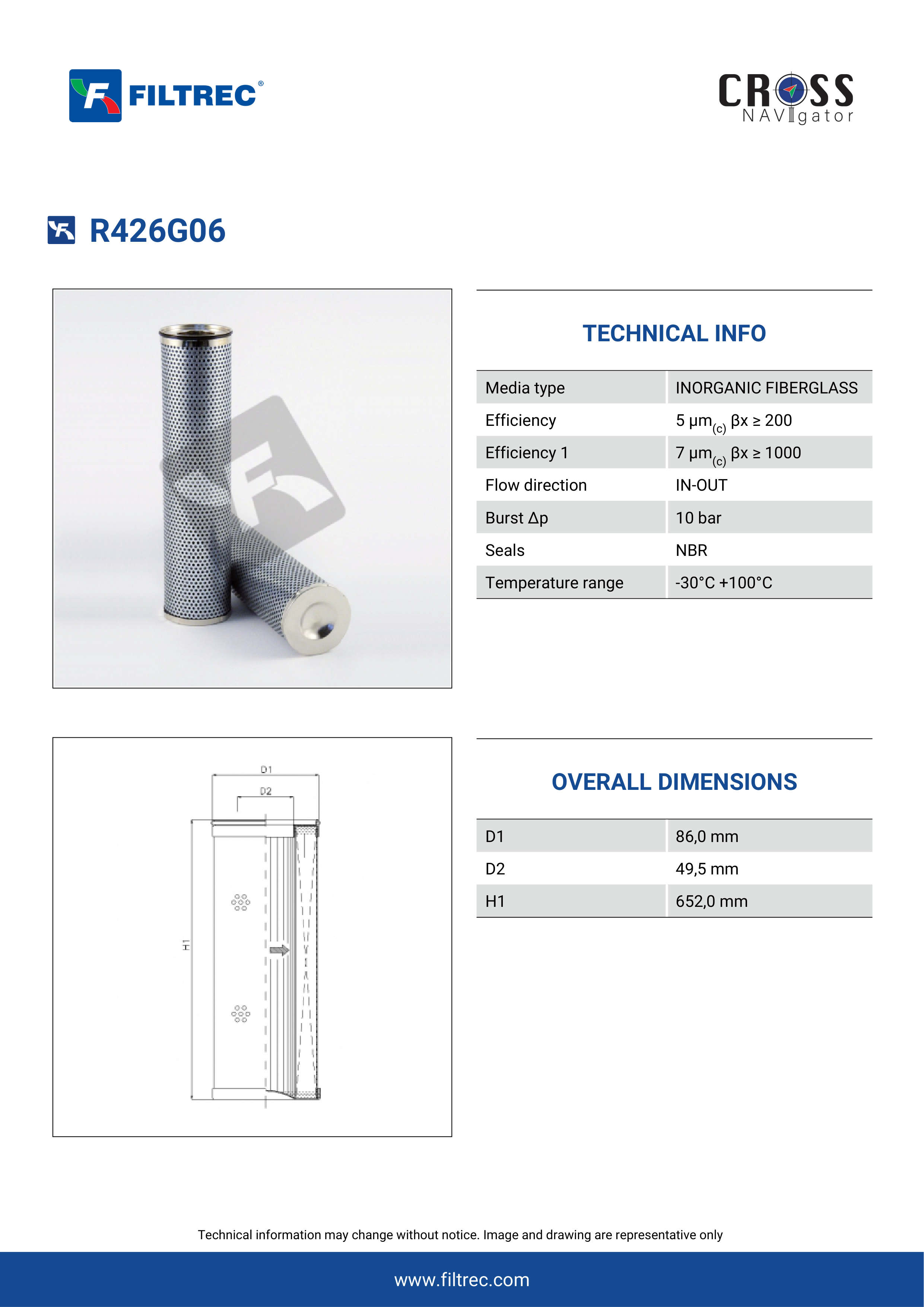 Genuine Filtrec R426G06. This Filtrec element is designed to meet or exceed the quality and performance of brand OEM’s ensuring superior filtration performance and long-lasting durability.