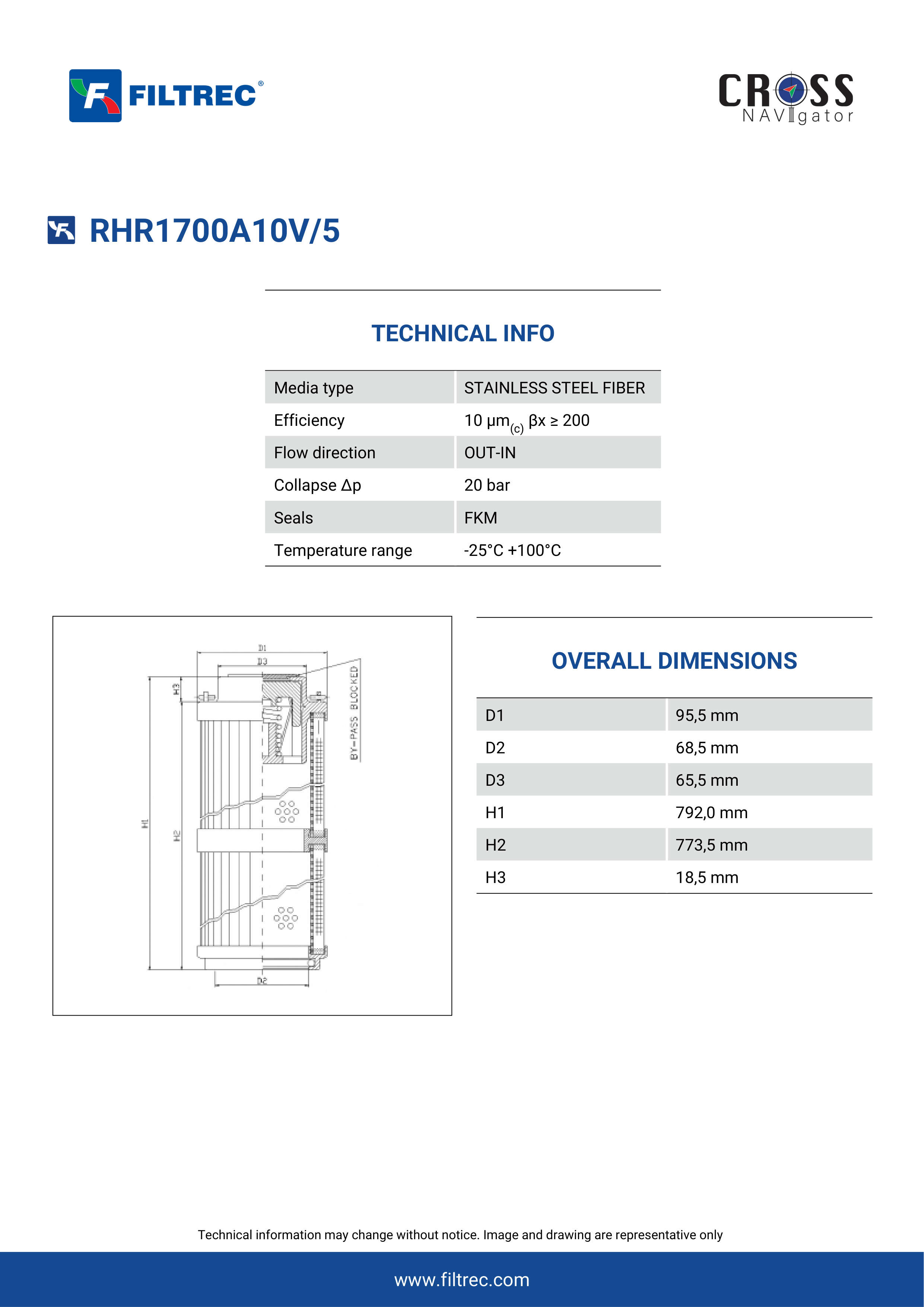 Genuine Filtrec RHR1700A10V/5. This Filtrec element is designed to meet or exceed the quality and performance of brand OEM’s ensuring superior filtration performance and long-lasting durability.