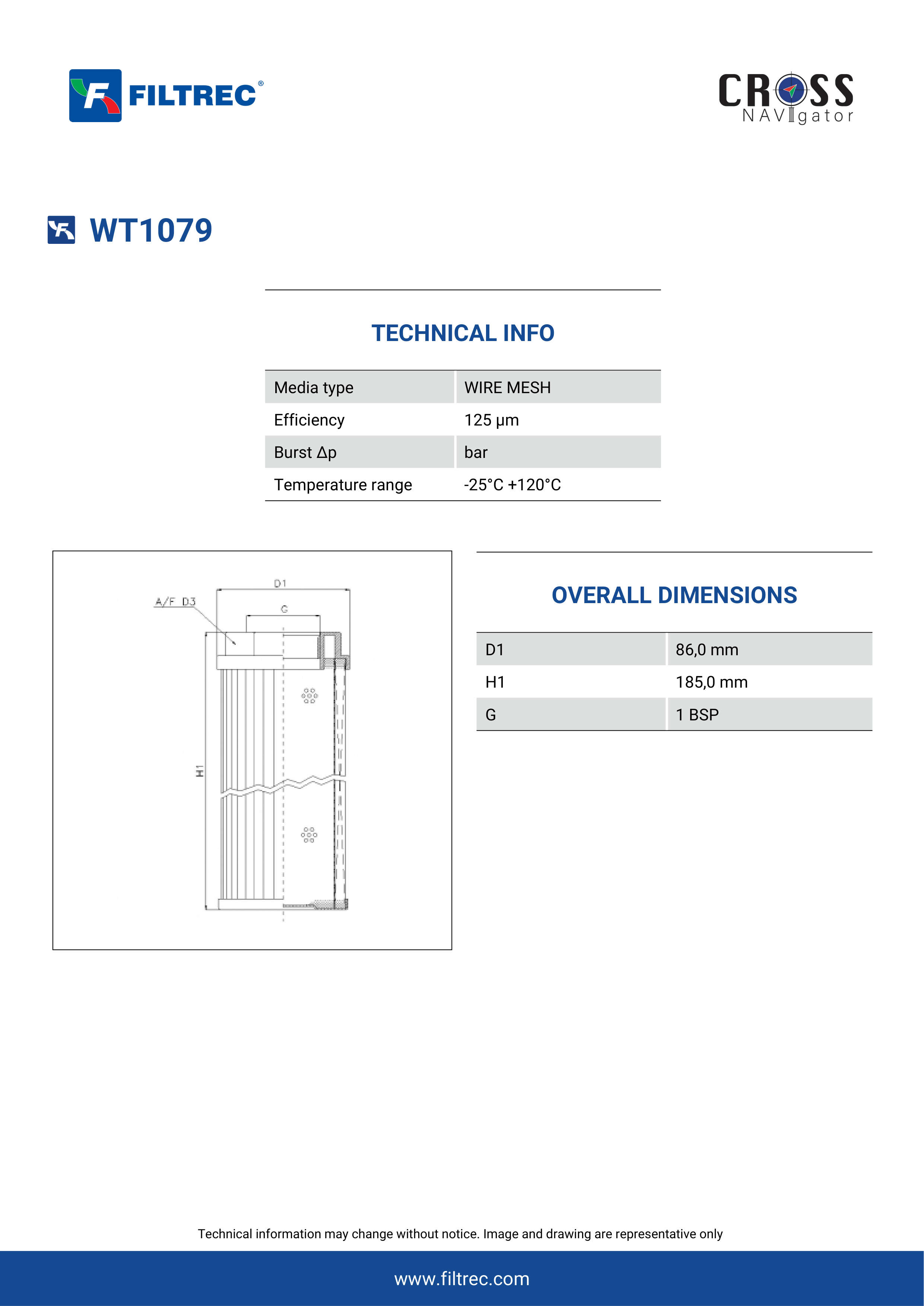 The efficiency of the element is shown using the Micron (µ) and Beta (β) ratings. The micron rating indicates the size of the particle being filtered and the beta rating the efficiency, calculated as 1/β.