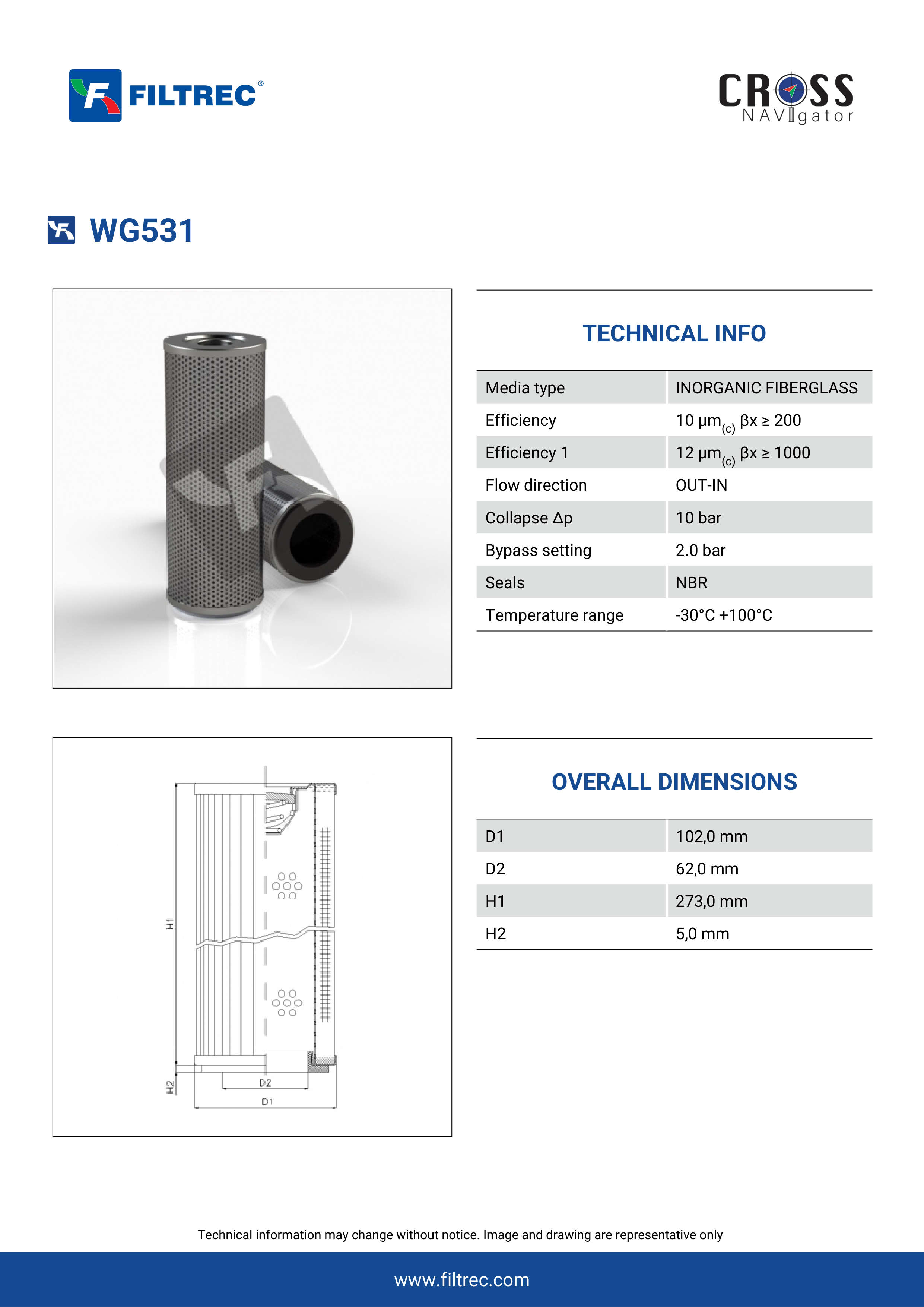 The efficiency of the element is shown using the Micron (µ) and Beta (β) ratings. The micron rating indicates the size of the particle being filtered and the beta rating the efficiency, calculated as 1/β.