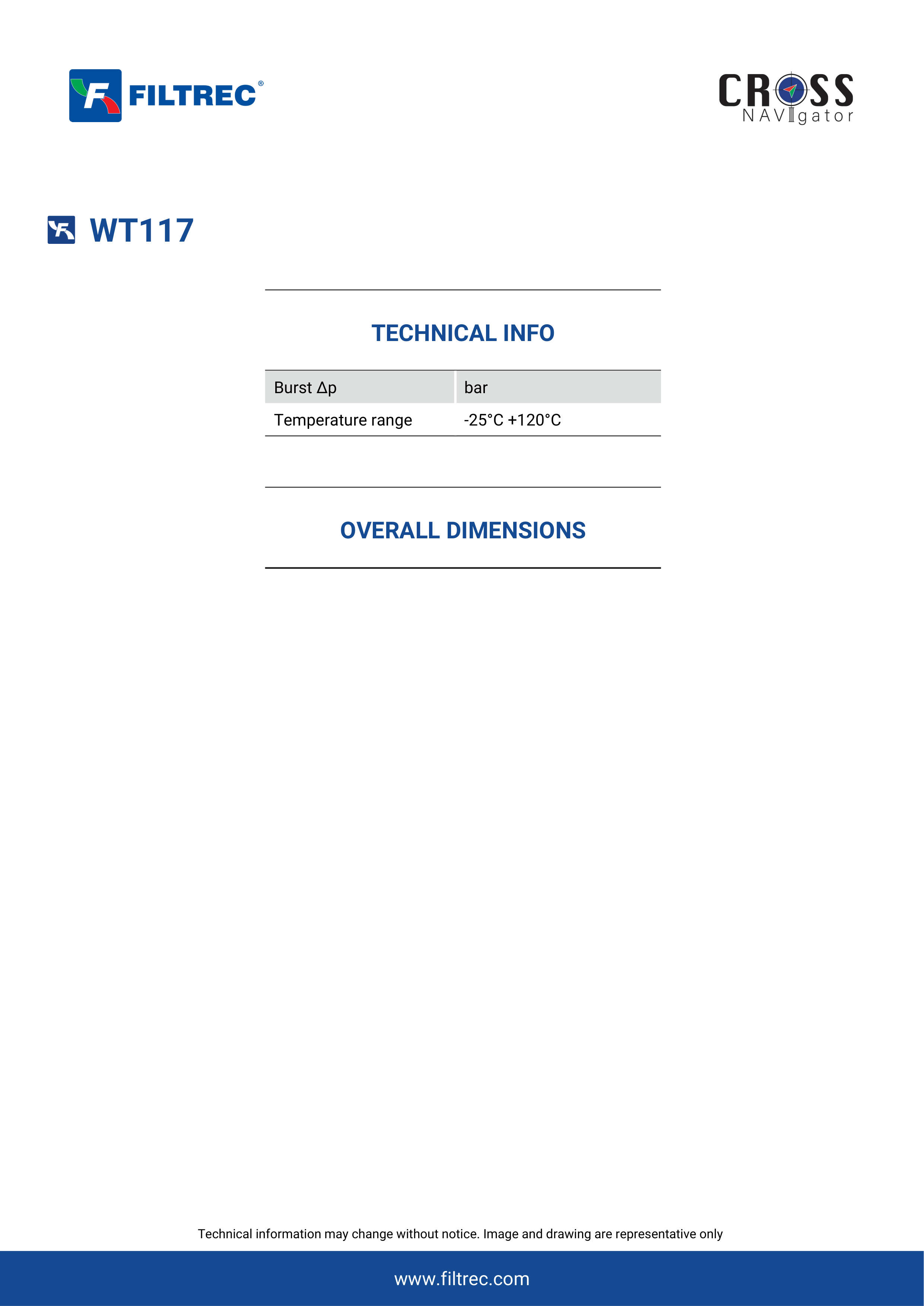 Genuine Filtrec WT117. This Filtrec element is designed to meet or exceed the quality and performance of brand OEM’s ensuring superior filtration performance and long-lasting durability.