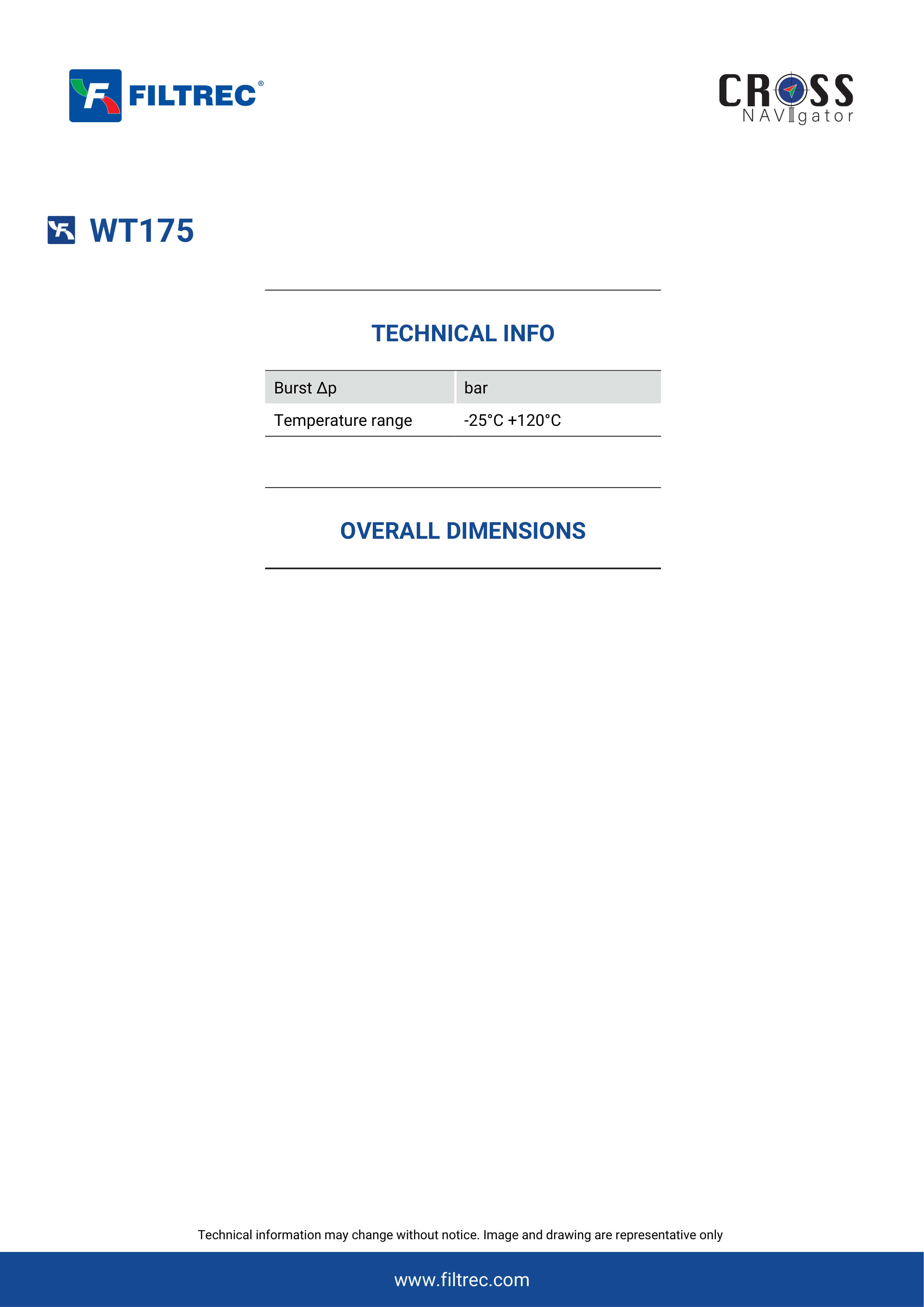 Genuine Filtrec WT175. This Filtrec element is designed to meet or exceed the quality and performance of brand OEM’s ensuring superior filtration performance and long-lasting durability.