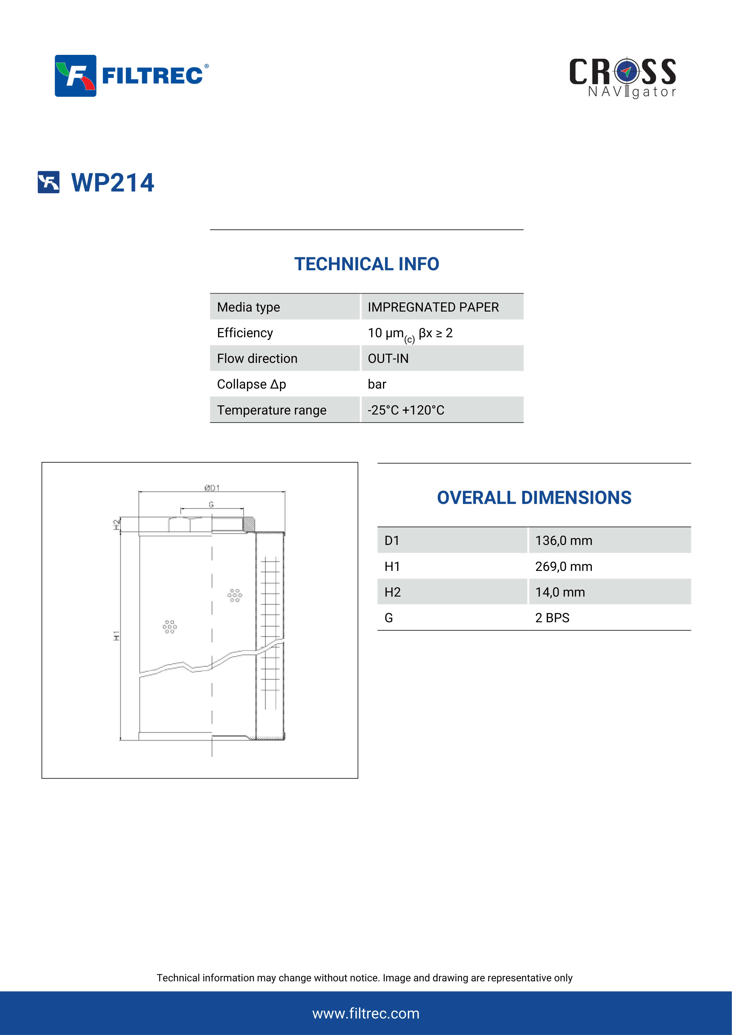 Genuine Filtrec WP214. This Filtrec element is designed to meet or exceed the quality and performance of brand OEM’s ensuring superior filtration performance and long-lasting durability.