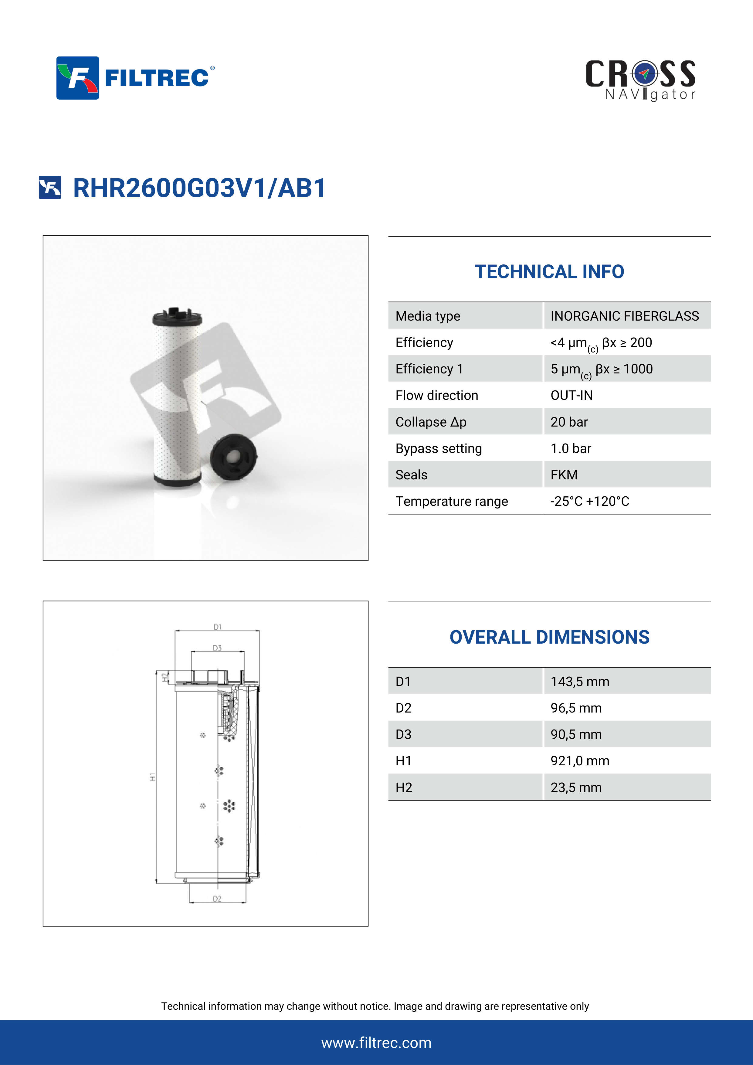 The efficiency of the element is shown using the Micron (µ) and Beta (β) ratings. The micron rating indicates the size of the particle being filtered and the beta rating the efficiency, calculated as 1/β.