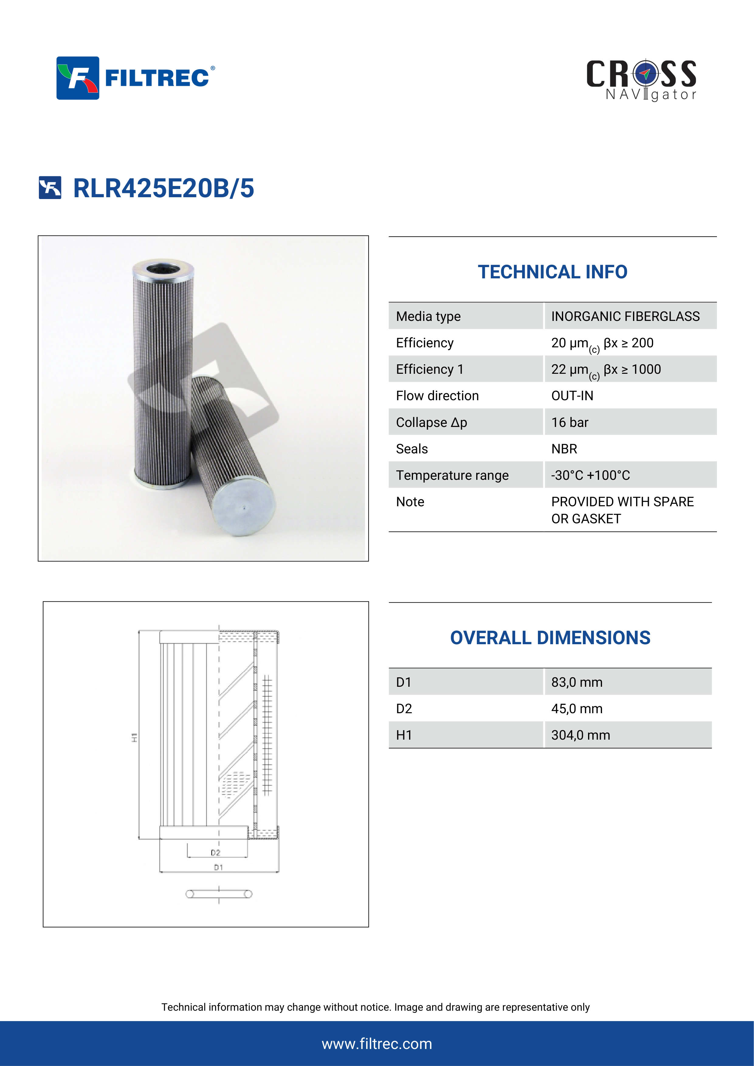 The efficiency of the element is shown using the Micron (µ) and Beta (β) ratings. The micron rating indicates the size of the particle being filtered and the beta rating the efficiency, calculated as 1/β.