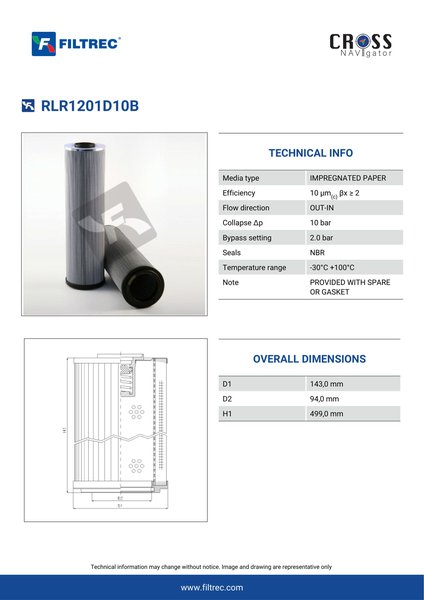 Genuine Filtrec RLR1201D10B. This Filtrec element is designed to meet or exceed the quality and performance of brand OEM’s ensuring superior filtration performance and long-lasting durability.