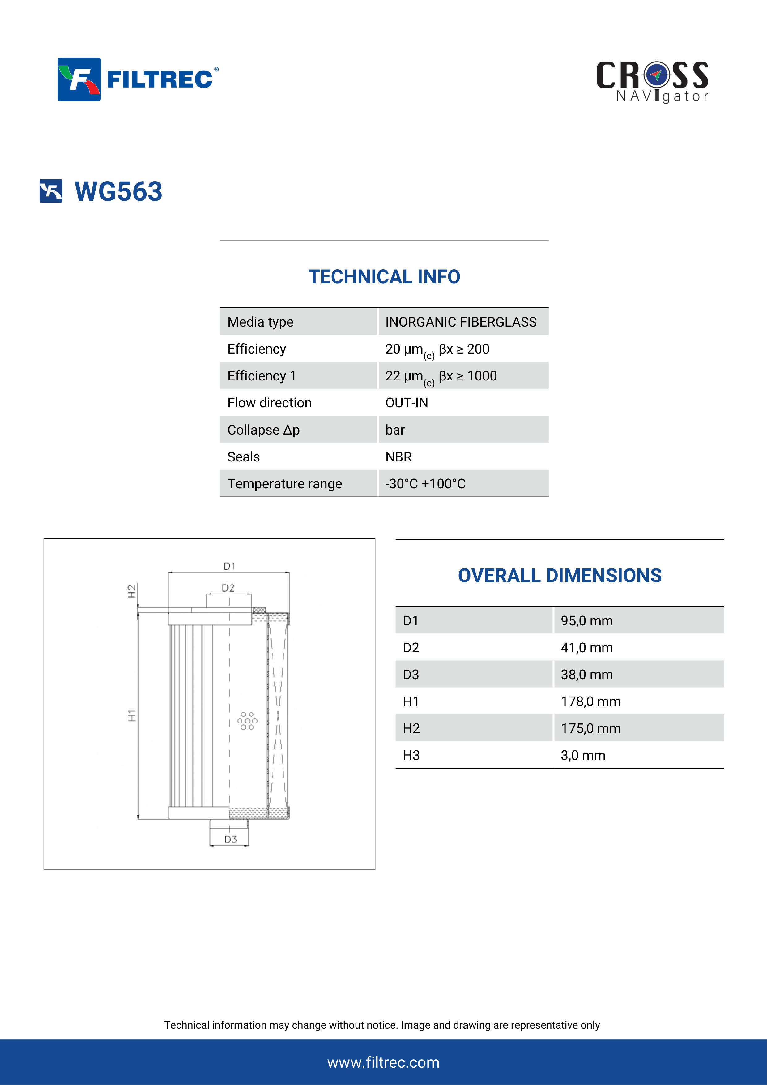 Genuine Filtrec WG563. This Filtrec element is designed to meet or exceed the quality and performance of brand OEM’s ensuring superior filtration performance and long-lasting durability.