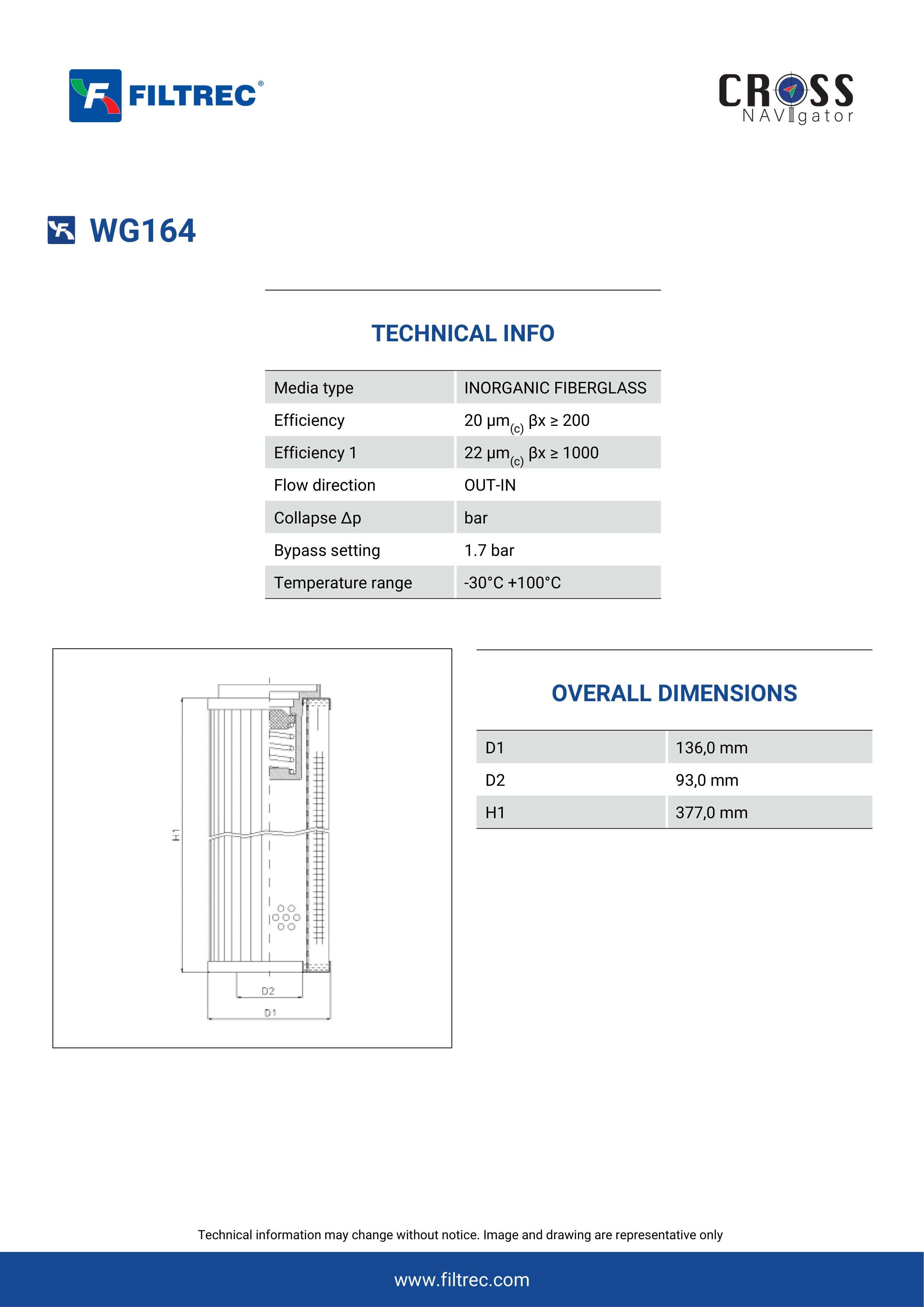 Genuine Filtrec WG164. This Filtrec element is designed to meet or exceed the quality and performance of brand OEM’s ensuring superior filtration performance and long-lasting durability.
