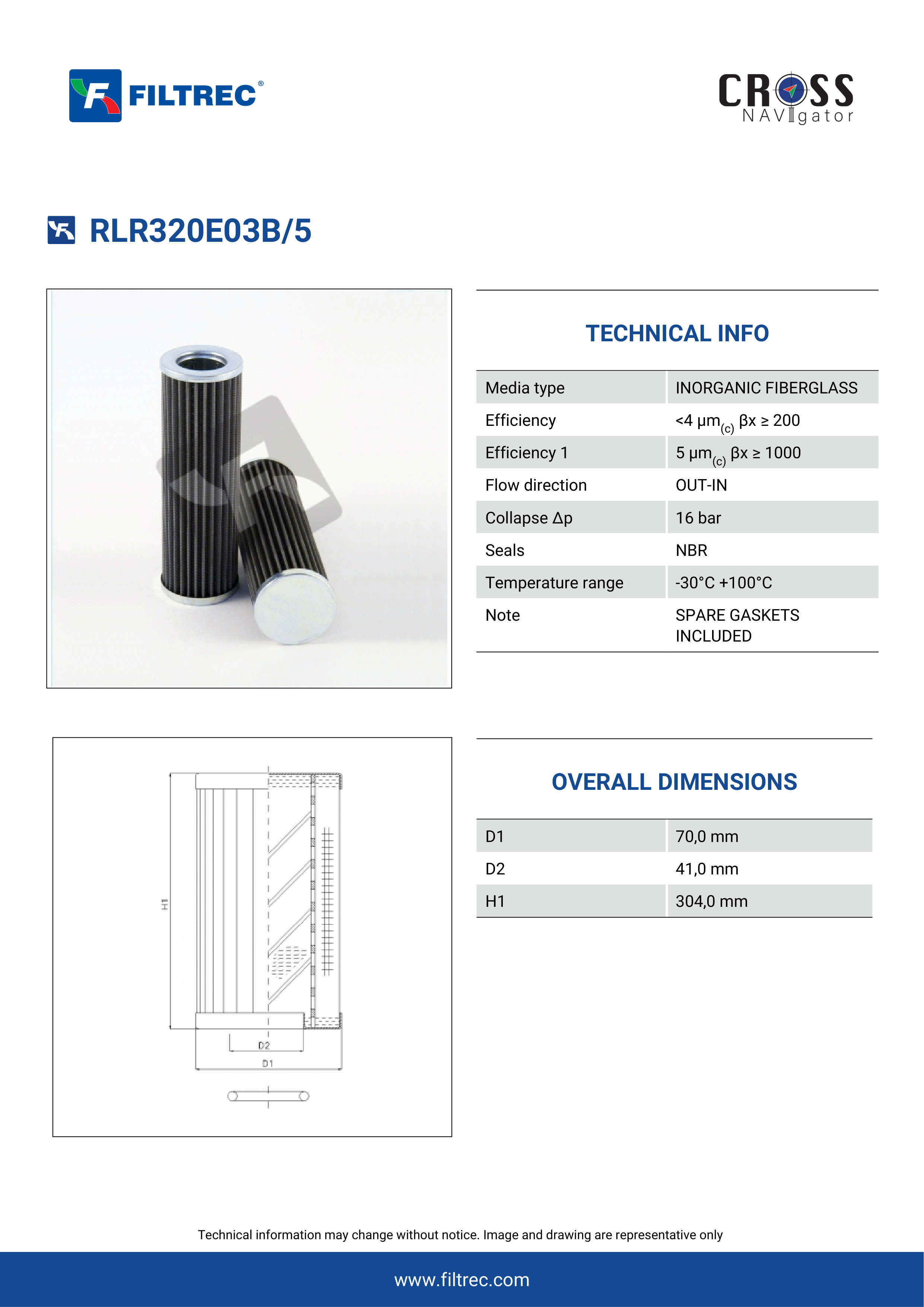 Filtrec RLR320E03B/5 Replaces the Internormen 305639