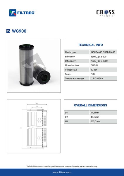 The efficiency of the element is shown using the Micron (µ) and Beta (β) ratings. The micron rating indicates the size of the particle being filtered and the beta rating the efficiency, calculated as 1/β.