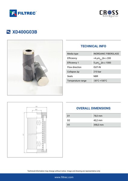 Genuine Filtrec XD400G03B. This Filtrec element is designed to meet or exceed the quality and performance of brand OEM’s ensuring superior filtration performance and long-lasting durability.