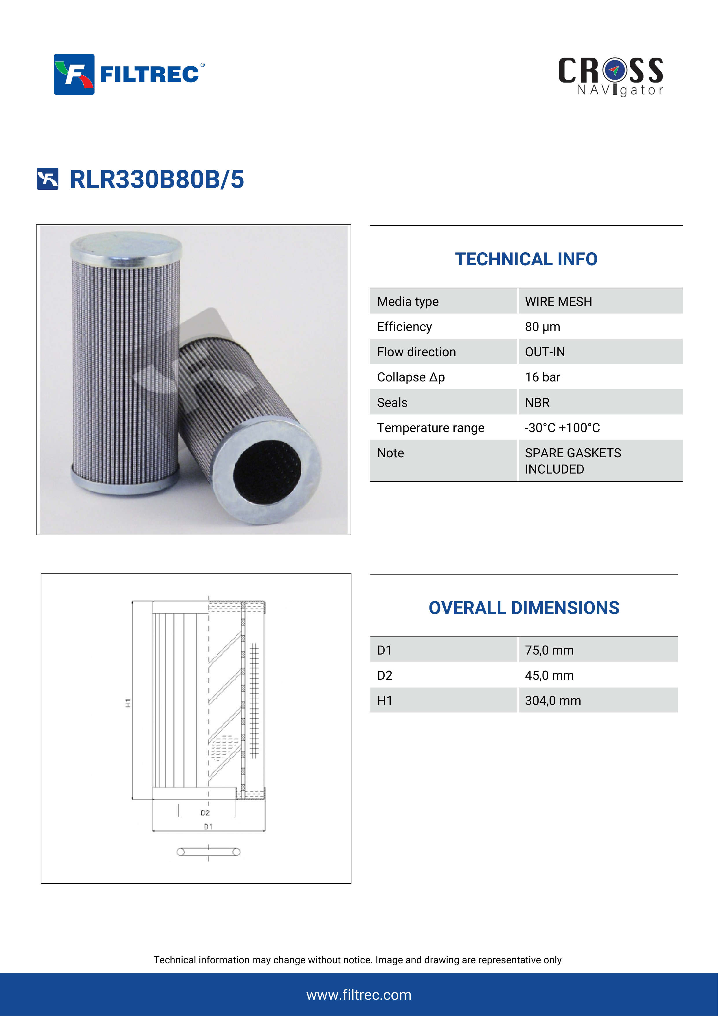 Genuine Filtrec RLR330B80B/5. This Filtrec element is designed to meet or exceed the quality and performance of brand OEM’s ensuring superior filtration performance and long-lasting durability.
