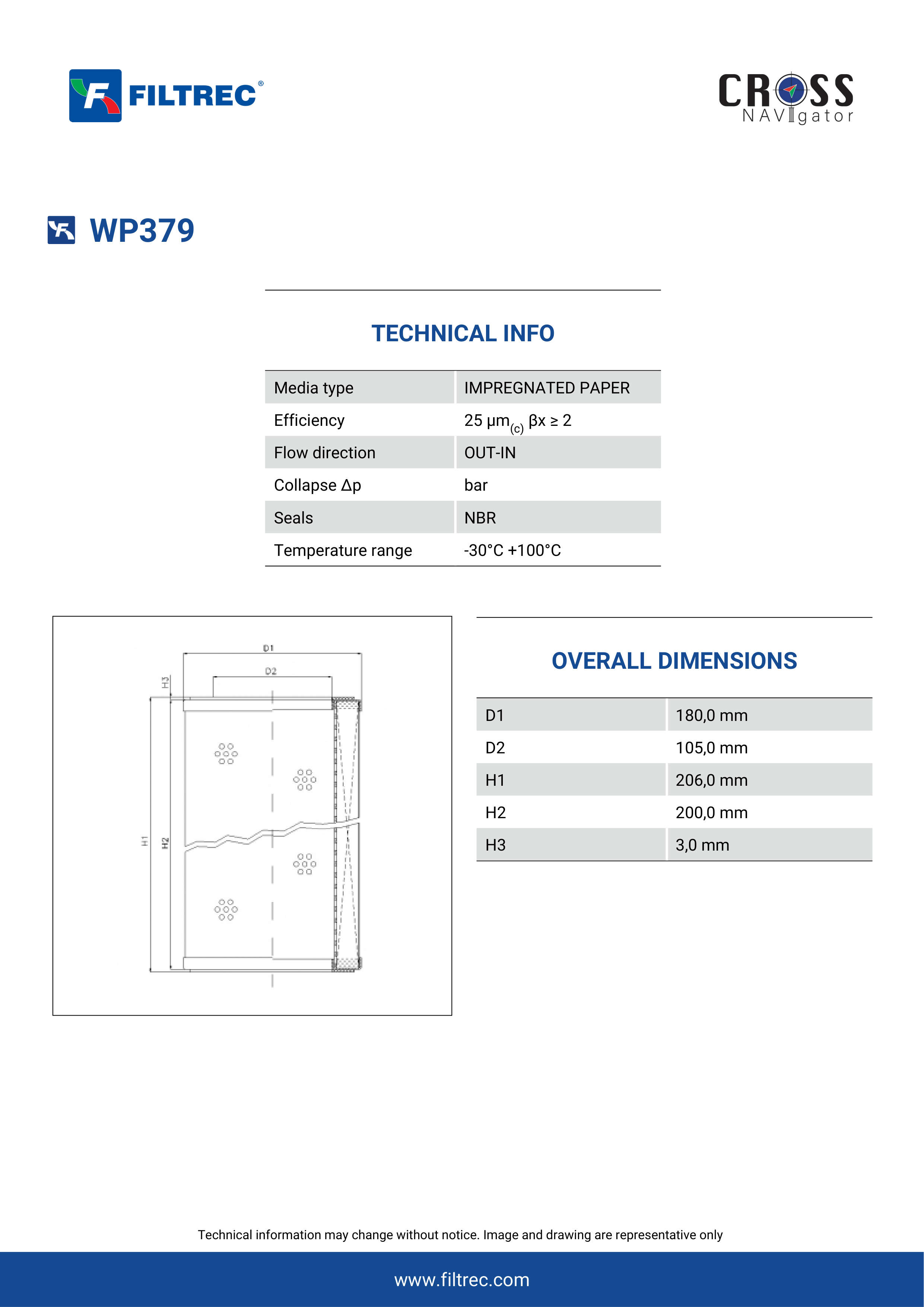 Genuine Filtrec WP379. This Filtrec element is designed to meet or exceed the quality and performance of brand OEM’s ensuring superior filtration performance and long-lasting durability.