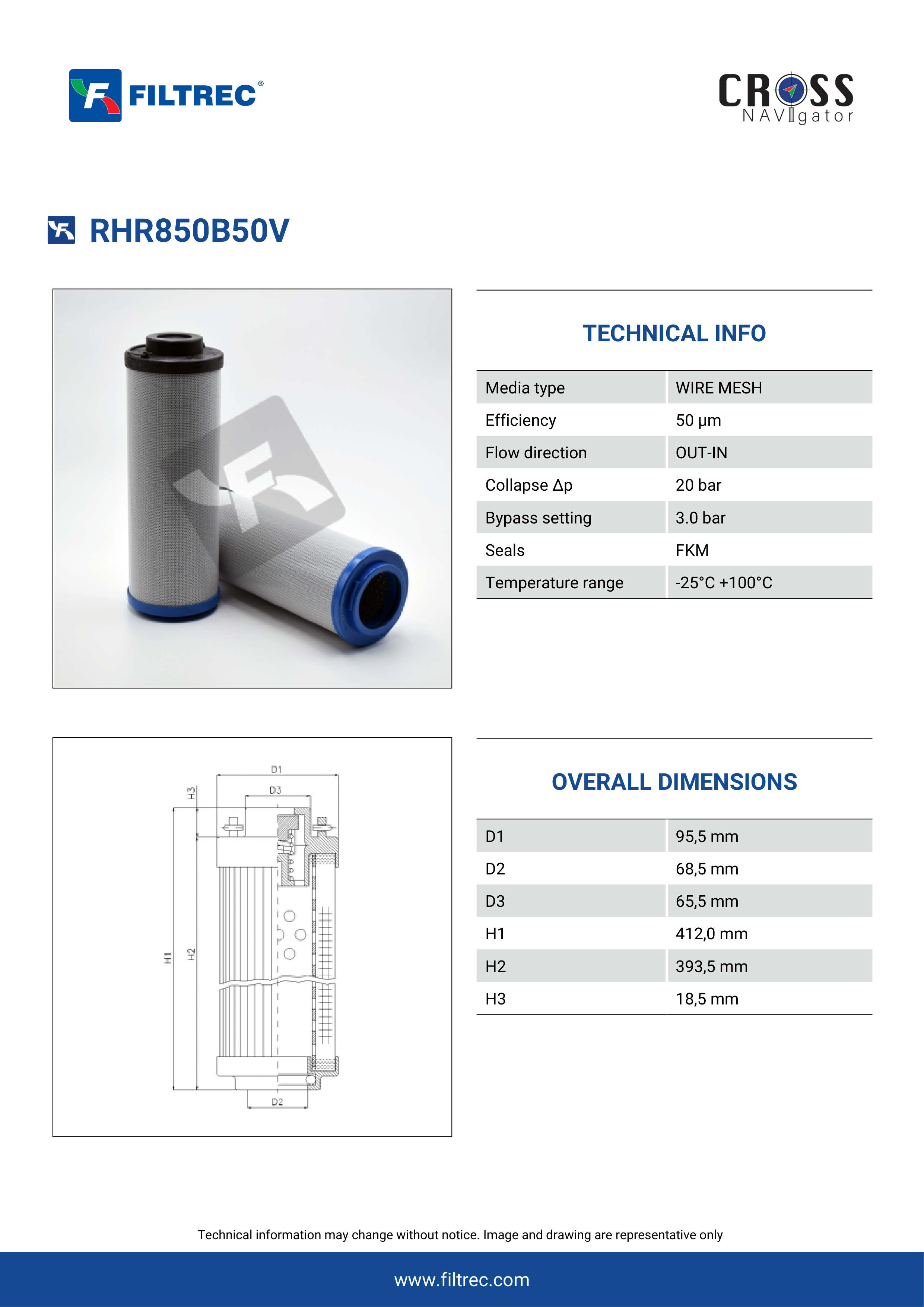 Genuine Filtrec RHR850B50V. This Filtrec element is designed to meet or exceed the quality and performance of brand OEM’s ensuring superior filtration performance and long-lasting durability.