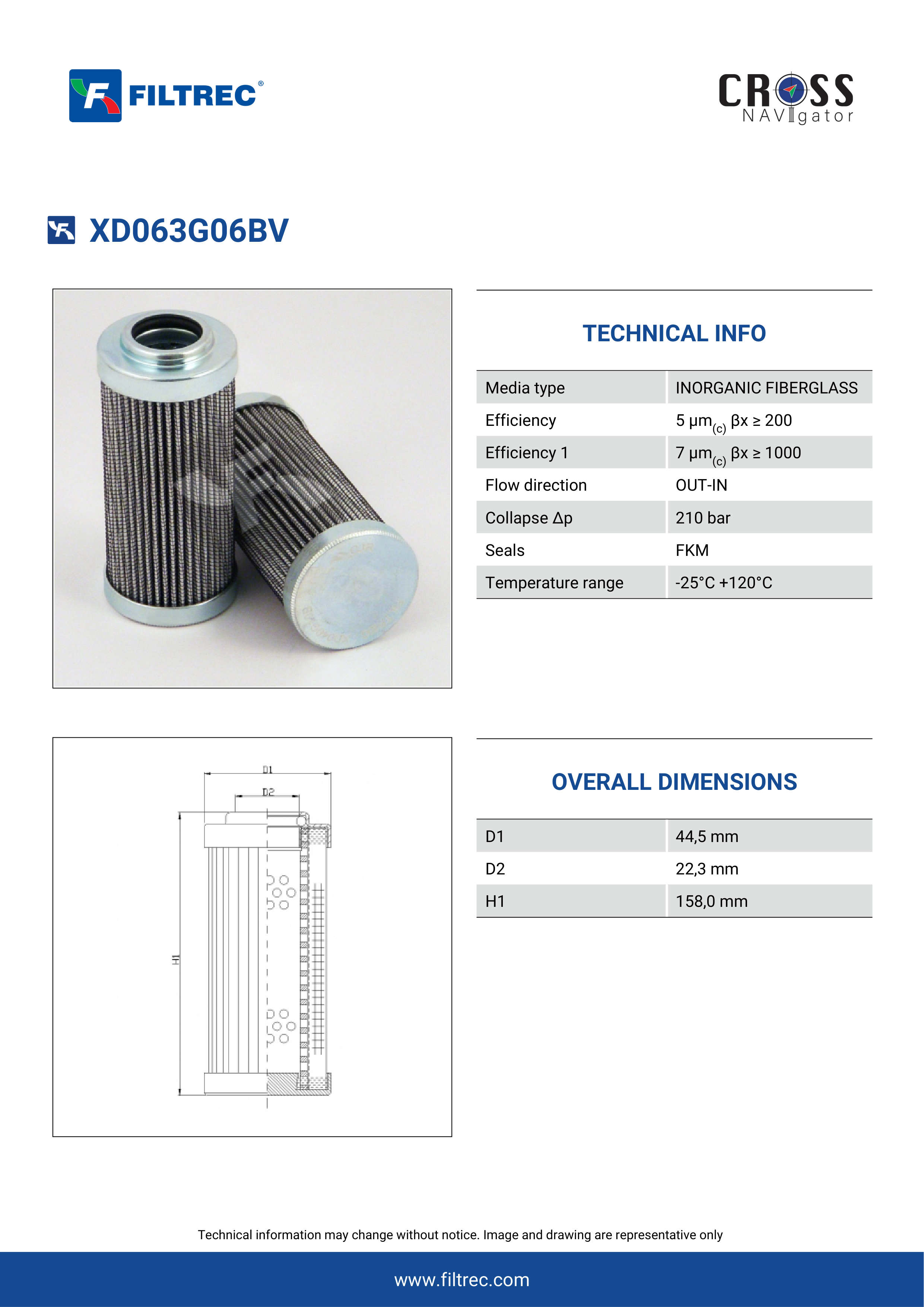 Genuine Filtrec XD063G06BV. This Filtrec element is designed to meet or exceed the quality and performance of brand OEM’s ensuring superior filtration performance and long-lasting durability.