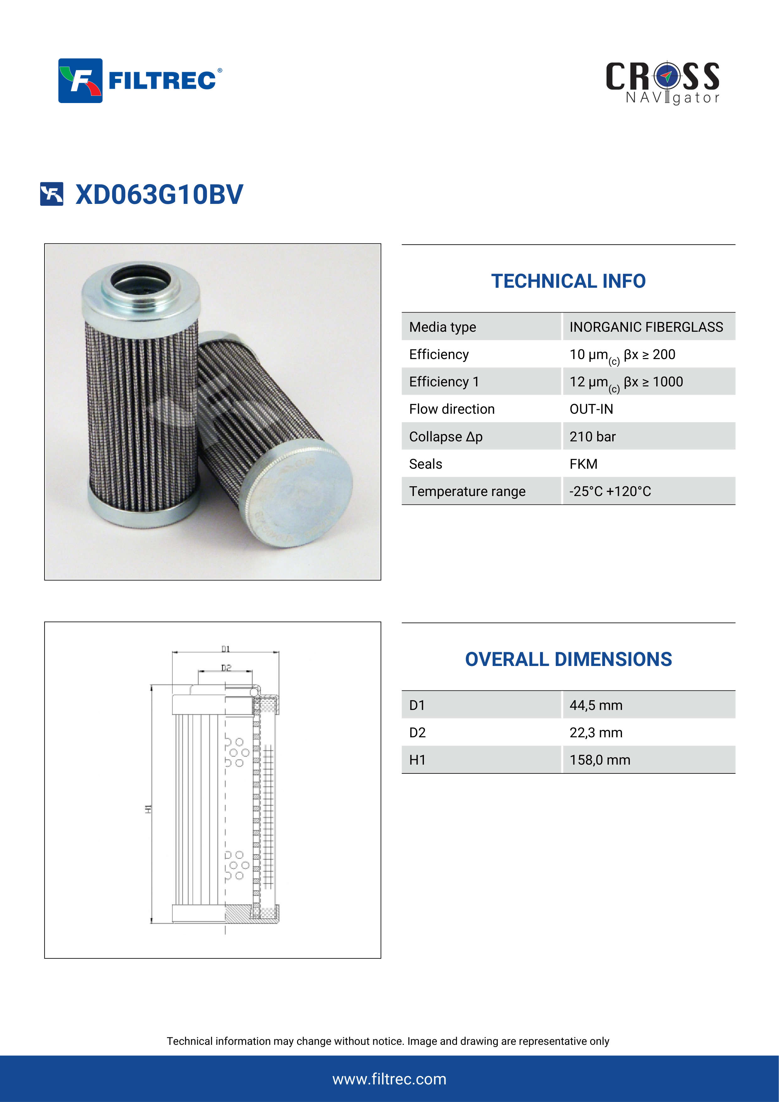 The efficiency of the element is shown using the Micron (µ) and Beta (β) ratings. The micron rating indicates the size of the particle being filtered and the beta rating the efficiency, calculated as 1/β.