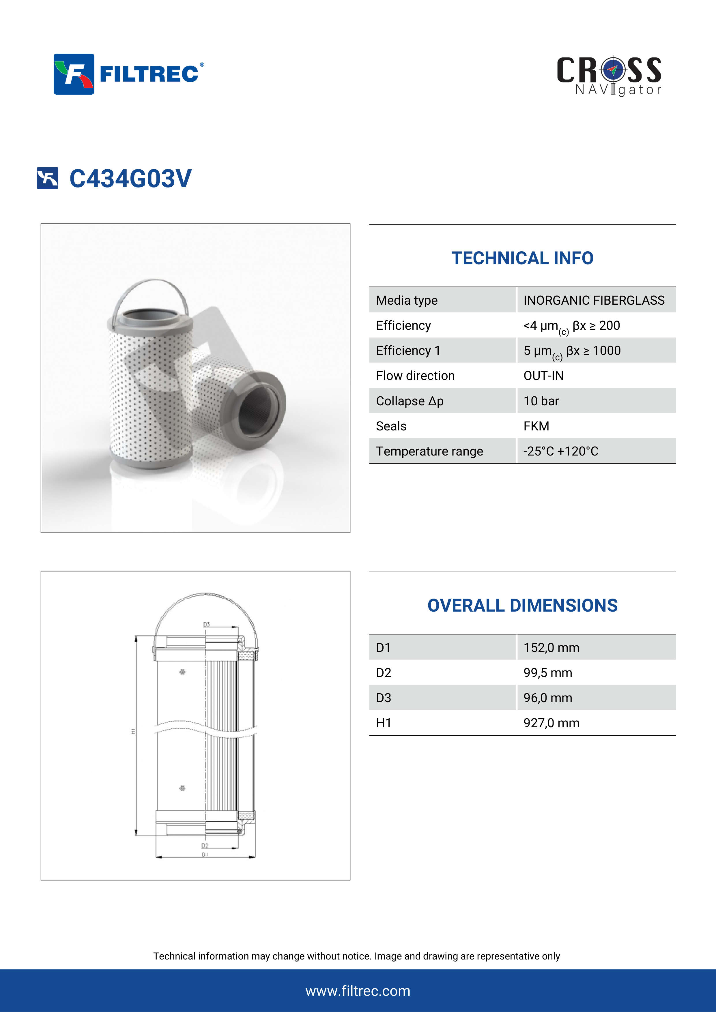 Engineered with their high performance media and a durable design, the C434G03V provides reliable and consistent performance over its lifespan, even in harsh operating environments. When you order from FilterFinder, you can trust that you are getting a reliable and high-quality replacement filter that will keep your system running smoothly.