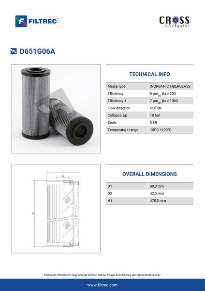 Engineered with their high performance media and a durable design, the D651G06A provides reliable and consistent performance over its lifespan, even in harsh operating environments. When you order from FilterFinder, you can trust that you are getting a reliable and high-quality replacement filter that will keep your system running smoothly.