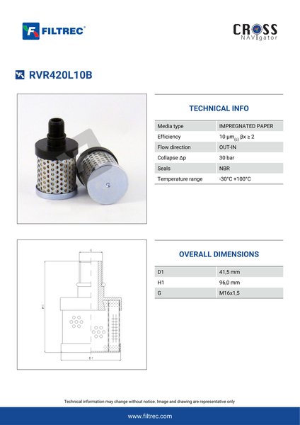 Engineered with their high performance media and a durable design, the RVR420L10B provides reliable and consistent performance over its lifespan, even in harsh operating environments. When you order from FilterFinder, you can trust that you are getting a reliable and high-quality replacement filter that will keep your system running smoothly.