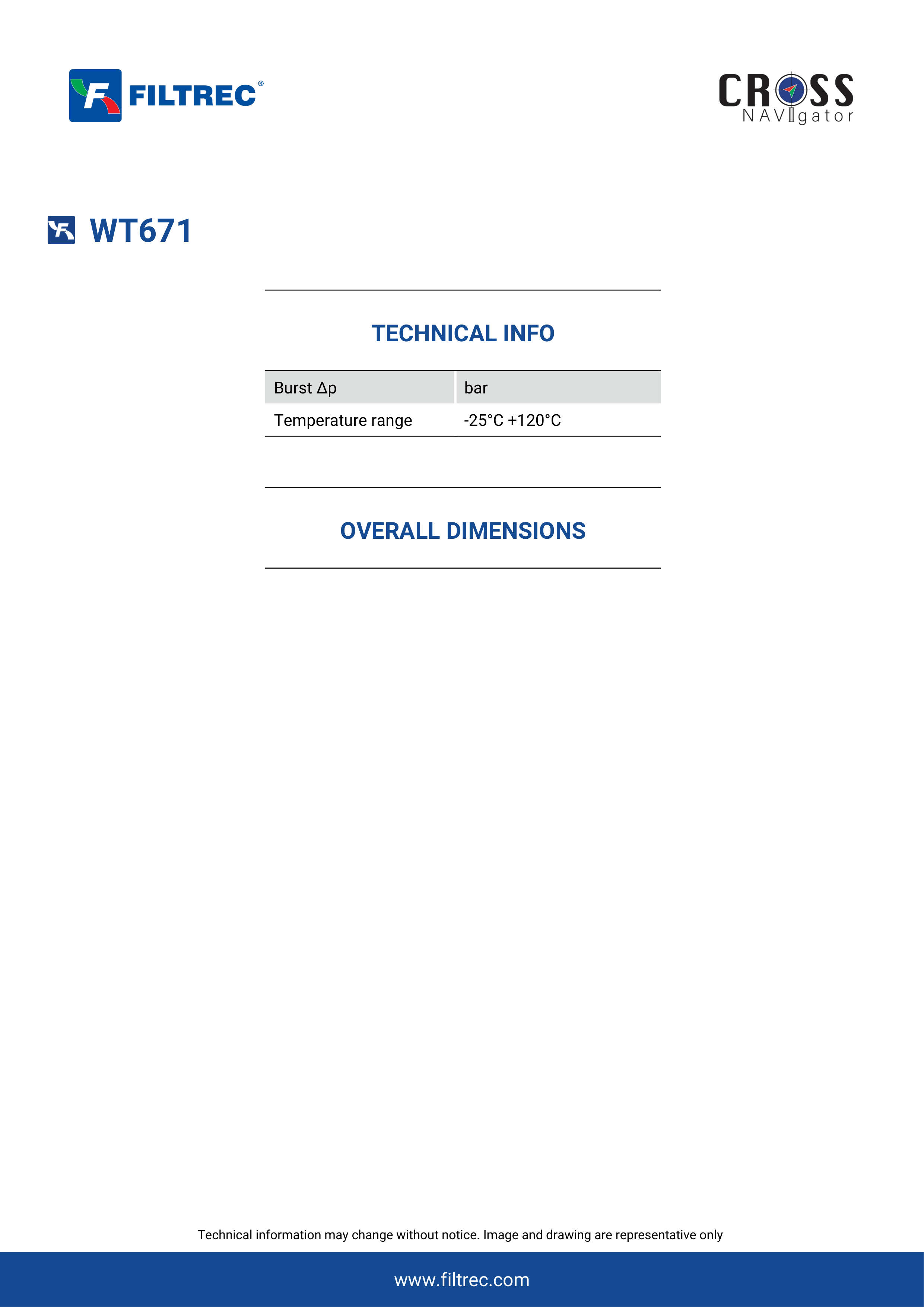 Genuine Filtrec WT671. This Filtrec element is designed to meet or exceed the quality and performance of brand OEM’s ensuring superior filtration performance and long-lasting durability.