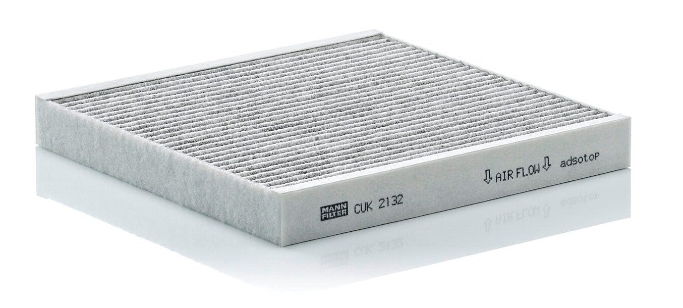 High-quality MANN-FILTER cabin filters with active carbon - nearly 100% protection from particles like pollen, diesel soot & tyre abrasion / Additional protection from harmful gases & unpleasant odour. The trated highly-effective activated carbon gives protection against harmful gases such as ozone, nitrogen oxide or sulphur dioxide and eliminates unpleasant odours during the entire service interval.