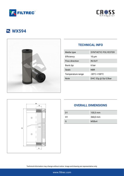 The efficiency of the element is shown using the Micron (µ) and Beta (β) ratings. The micron rating indicates the size of the particle being filtered and the beta rating the efficiency, calculated as 1/β.