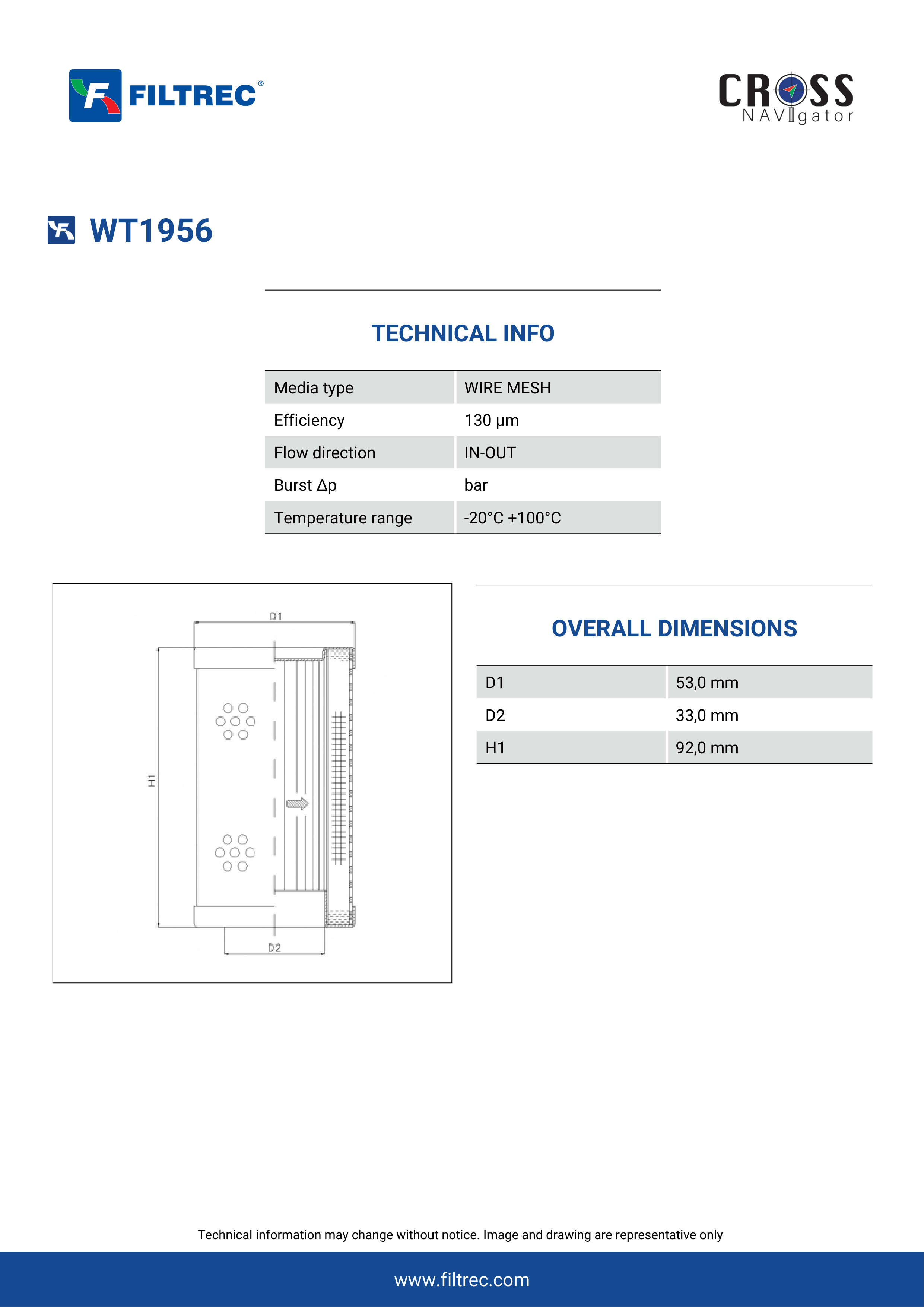 The efficiency of the element is shown using the Micron (µ) and Beta (β) ratings. The micron rating indicates the size of the particle being filtered and the beta rating the efficiency, calculated as 1/β.