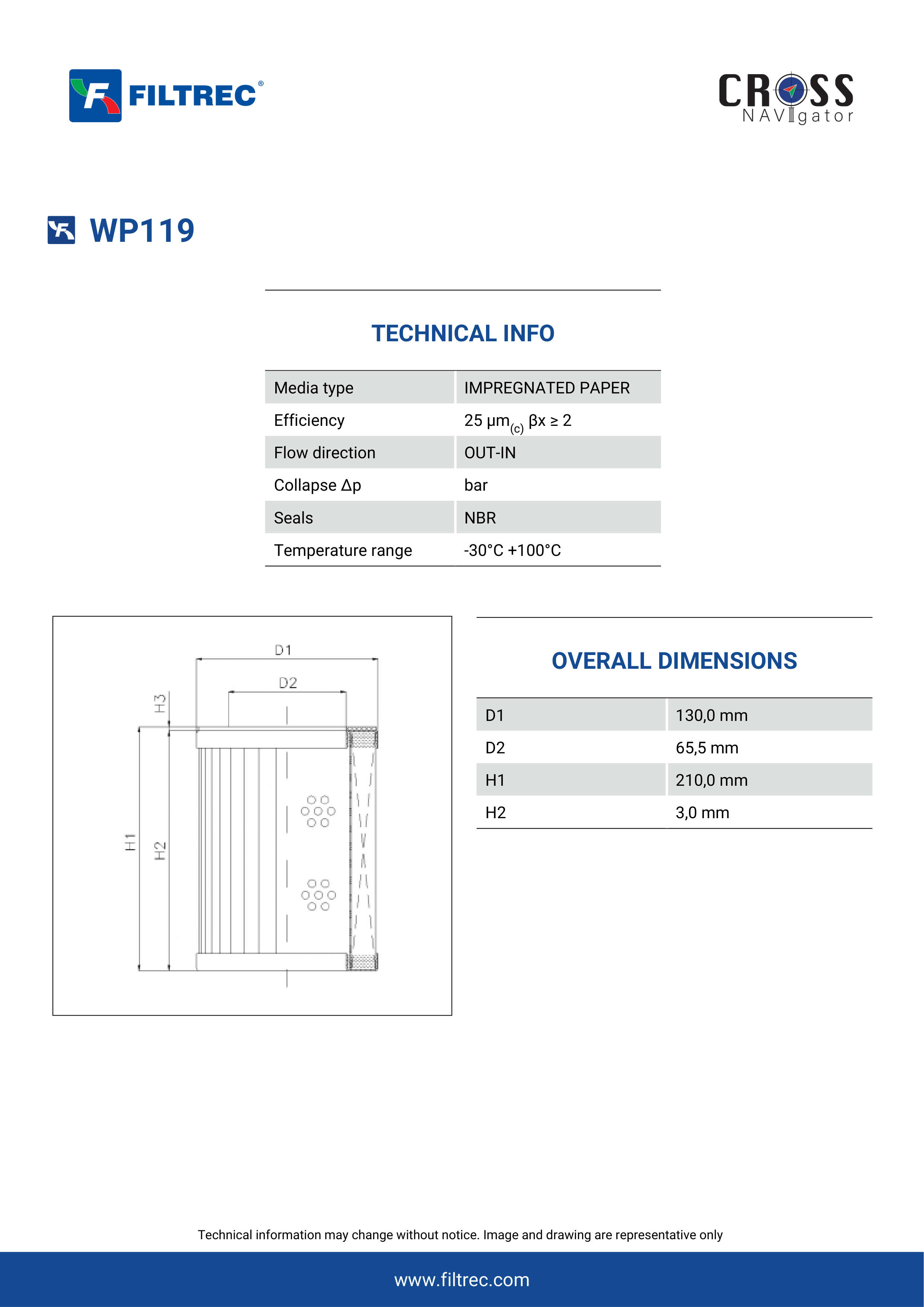 Genuine Filtrec WP119. This Filtrec element is designed to meet or exceed the quality and performance of brand OEM’s ensuring superior filtration performance and long-lasting durability.