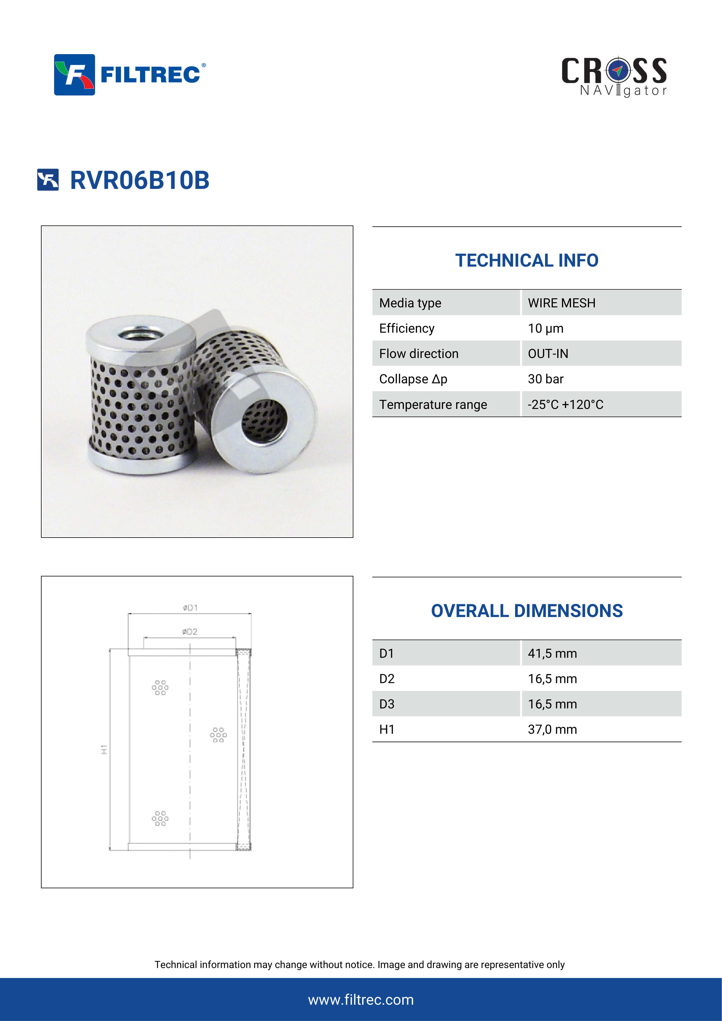 Genuine Filtrec RVR06B10B. This Filtrec element is designed to meet or exceed the quality and performance of brand OEM’s ensuring superior filtration performance and long-lasting durability.