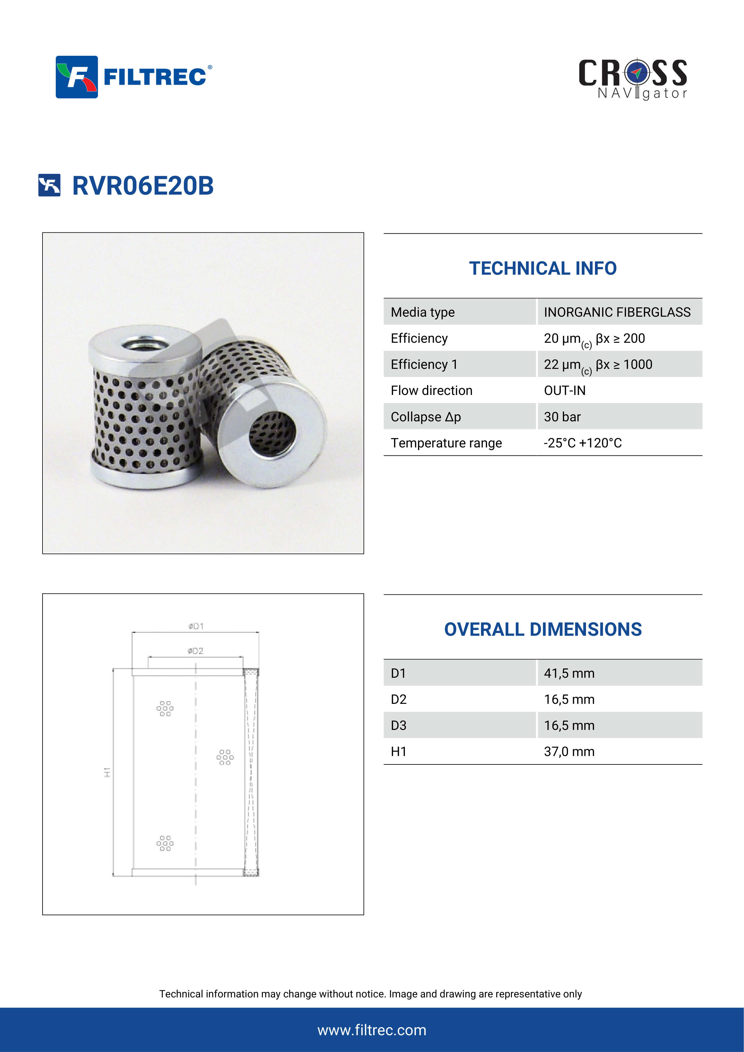 Genuine Filtrec RVR06E20B. This Filtrec element is designed to meet or exceed the quality and performance of brand OEM’s ensuring superior filtration performance and long-lasting durability.