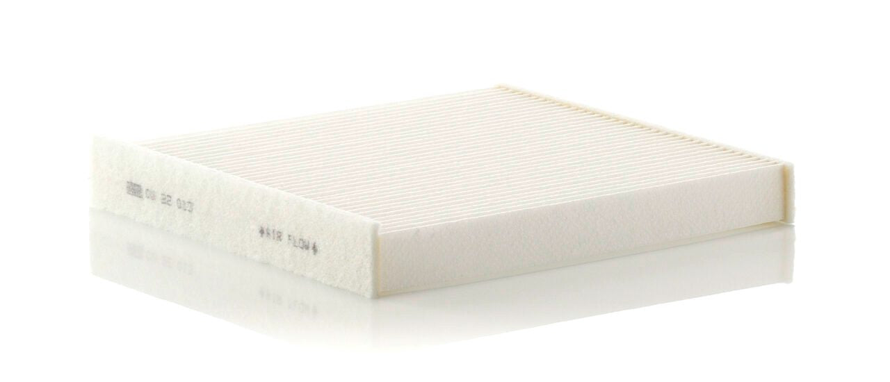 High-quality MANN-FILTER cabin filters offer almost 100% protection against particles such as pollen, diesel soot and tyre abrasion - for a feel-good climate in the vehicle interior and protection of the air conditioning system. Exact fit and perfect tightness ensure constant filtration performance during the entire service interval / Optimum vehicle interior ventilation due to the high air flow capacity.