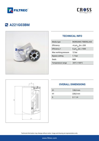 Genuine Filtrec A221G03BM. This Filtrec element is designed to meet or exceed the quality and performance of brand OEM’s ensuring superior filtration performance and long-lasting durability.Engineered with their high performance media and a durable design, the A221G03BM provides reliable and consistent performance over its lifespan, even in harsh operating environments. When you order from FilterFinder, you can trust that you are getting a reliable and high-quality replacement filter that will keep your system running smoothly.