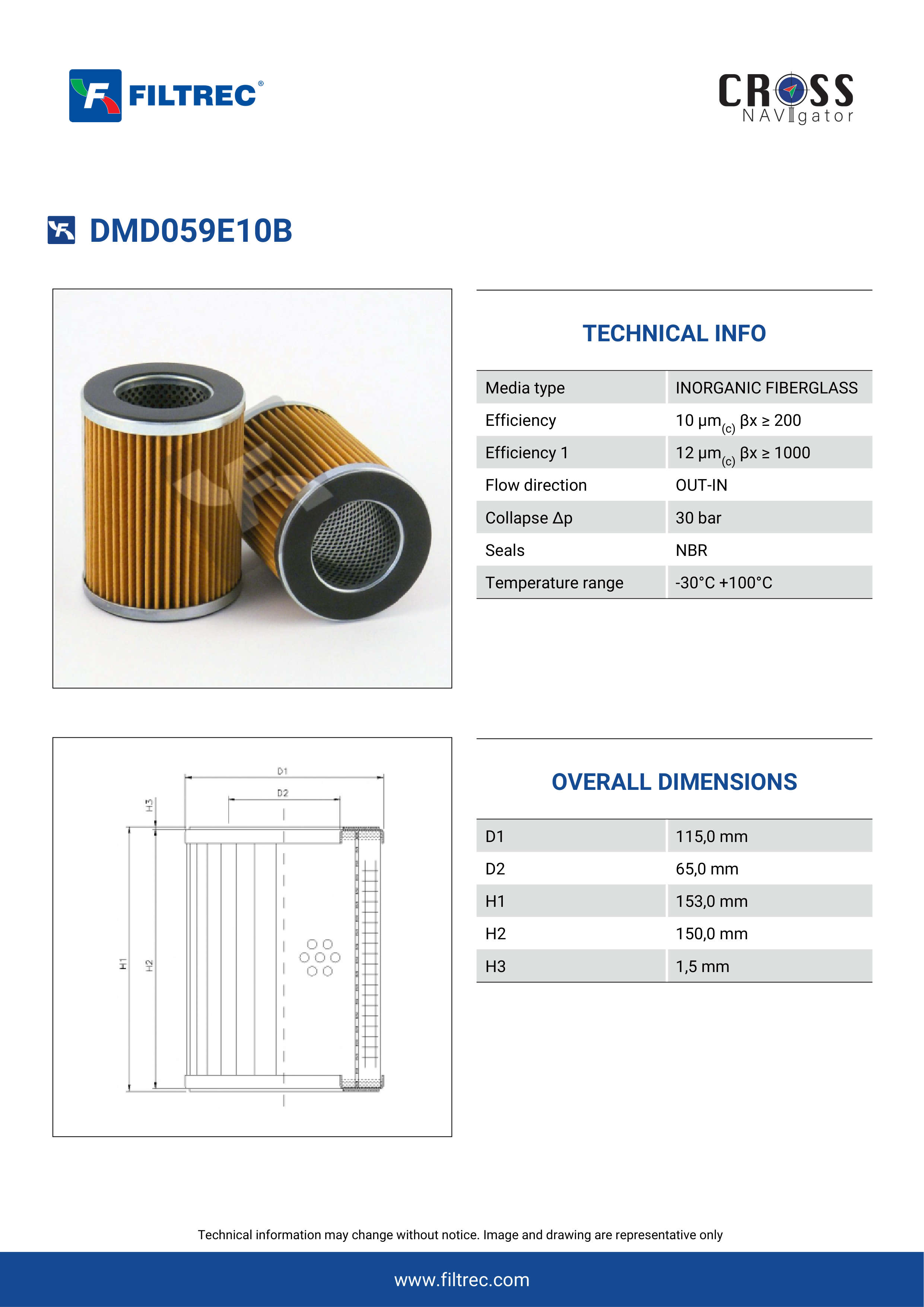 Genuine Filtrec DMD059E10B. This Filtrec element is designed to meet or exceed the quality and performance of brand OEM’s ensuring superior filtration performance and long-lasting durability.