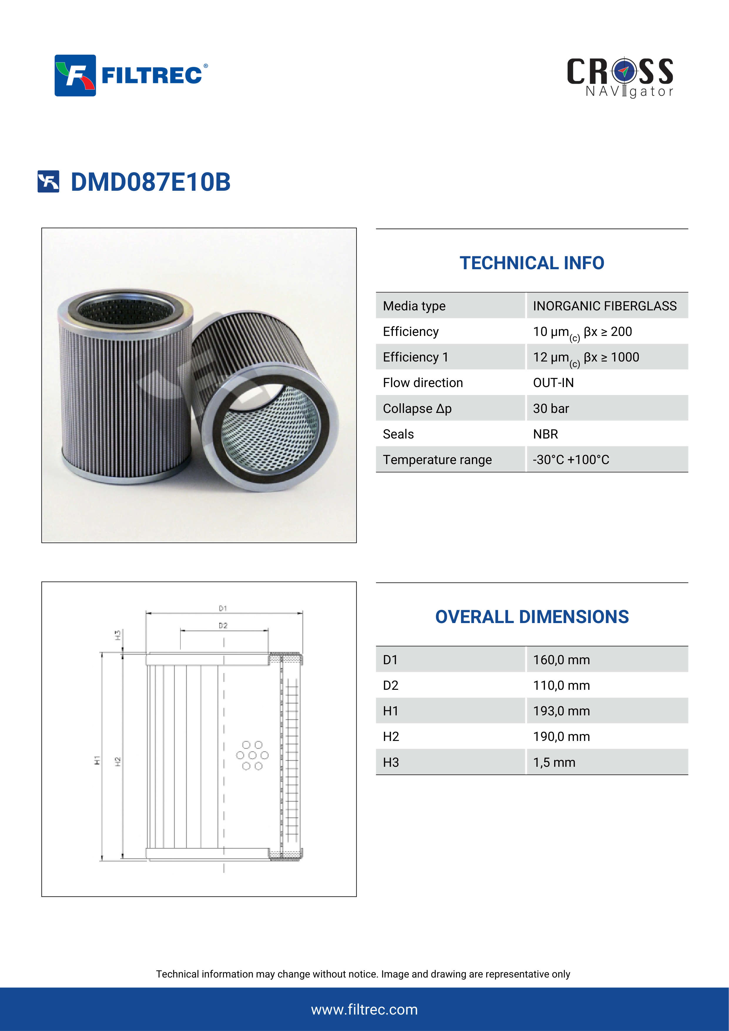 Genuine Filtrec DMD087E10B. This Filtrec element is designed to meet or exceed the quality and performance of brand OEM’s ensuring superior filtration performance and long-lasting durability.