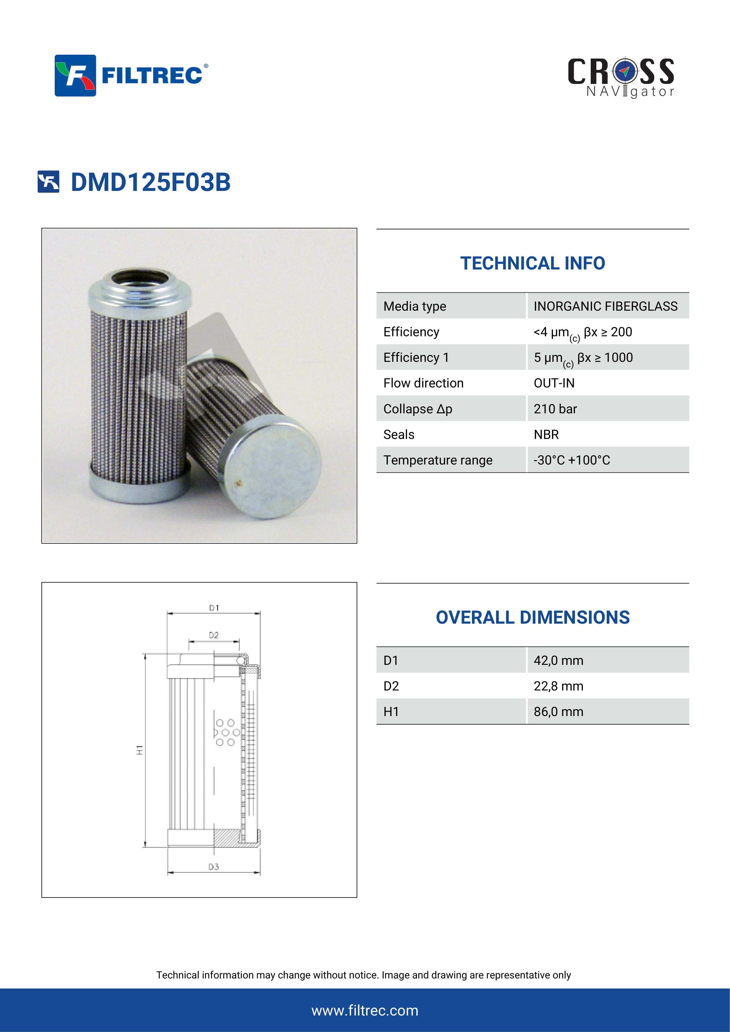 Genuine Filtrec DMD125F03B. This Filtrec element is designed to meet or exceed the quality and performance of brand OEM’s ensuring superior filtration performance and long-lasting durability.