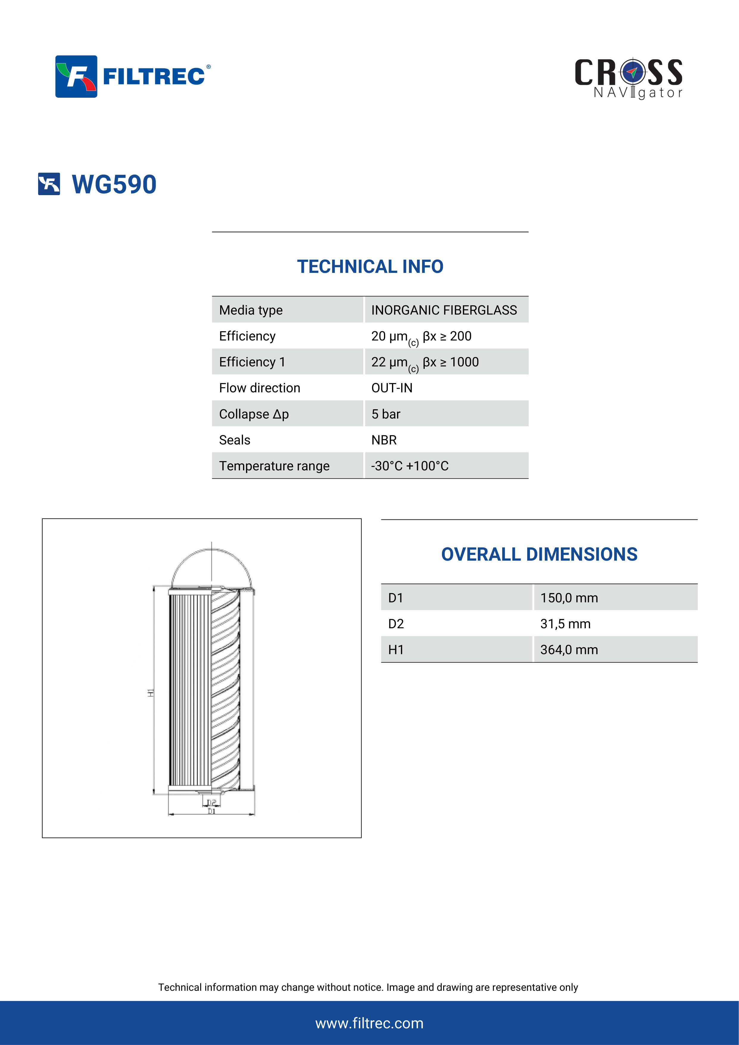 Genuine Filtrec WG590. This Filtrec element is designed to meet or exceed the quality and performance of brand OEM’s ensuring superior filtration performance and long-lasting durability.