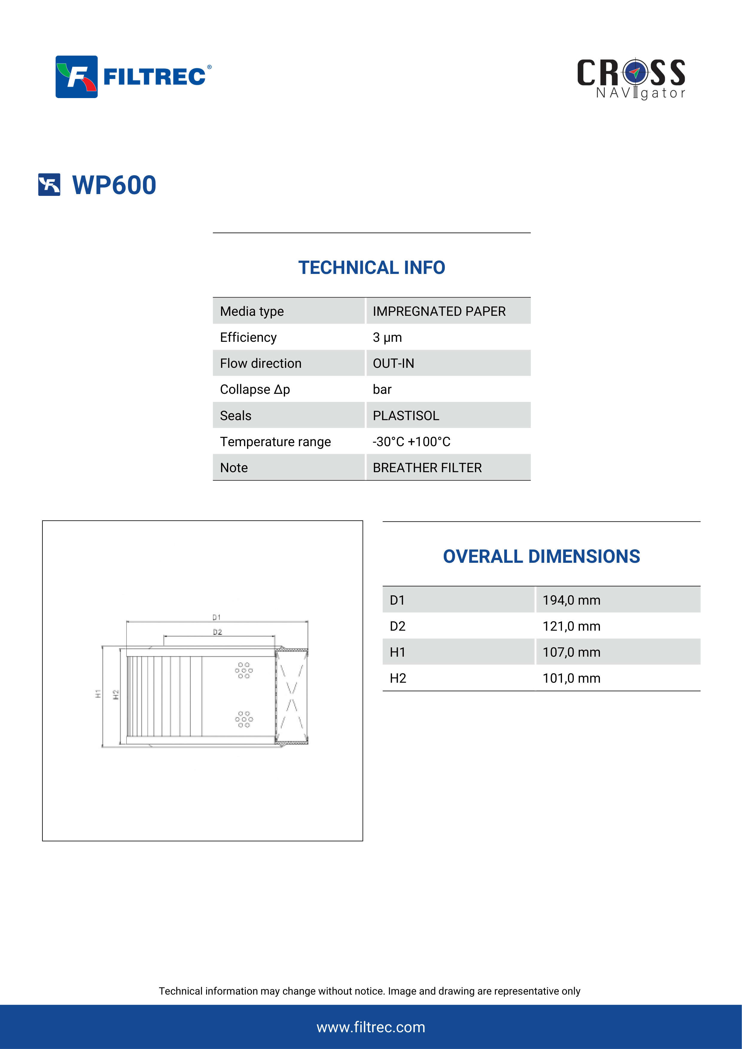 Genuine Filtrec WP600. This Filtrec element is designed to meet or exceed the quality and performance of brand OEM’s ensuring superior filtration performance and long-lasting durability.