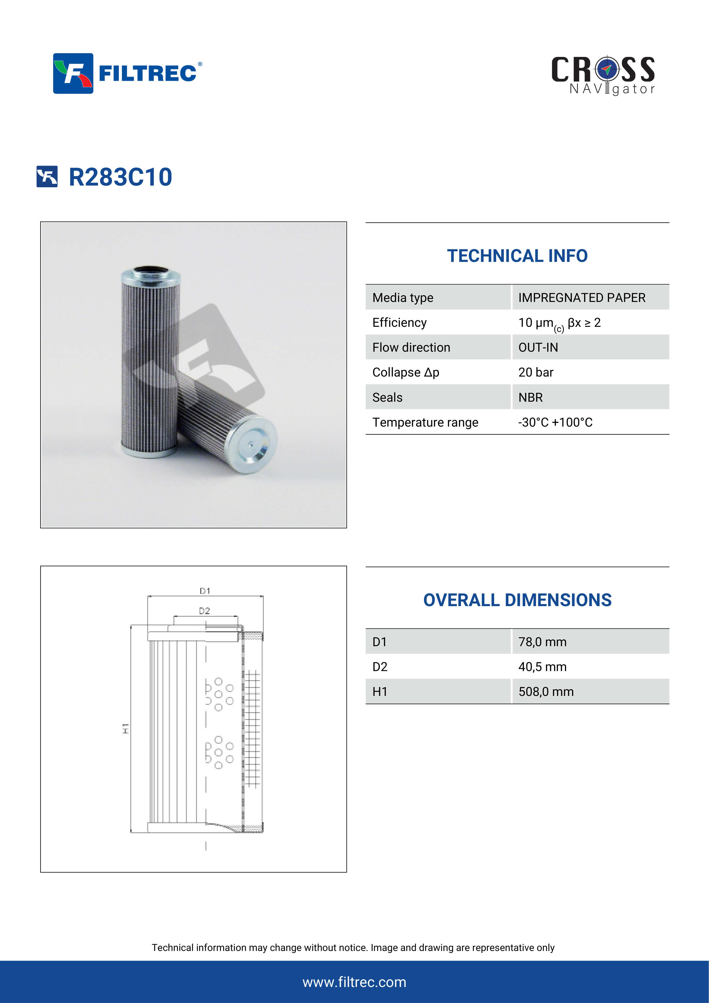 Genuine Filtrec R283C10. This Filtrec element is designed to meet or exceed the quality and performance of brand OEM’s ensuring superior filtration performance and long-lasting durability.