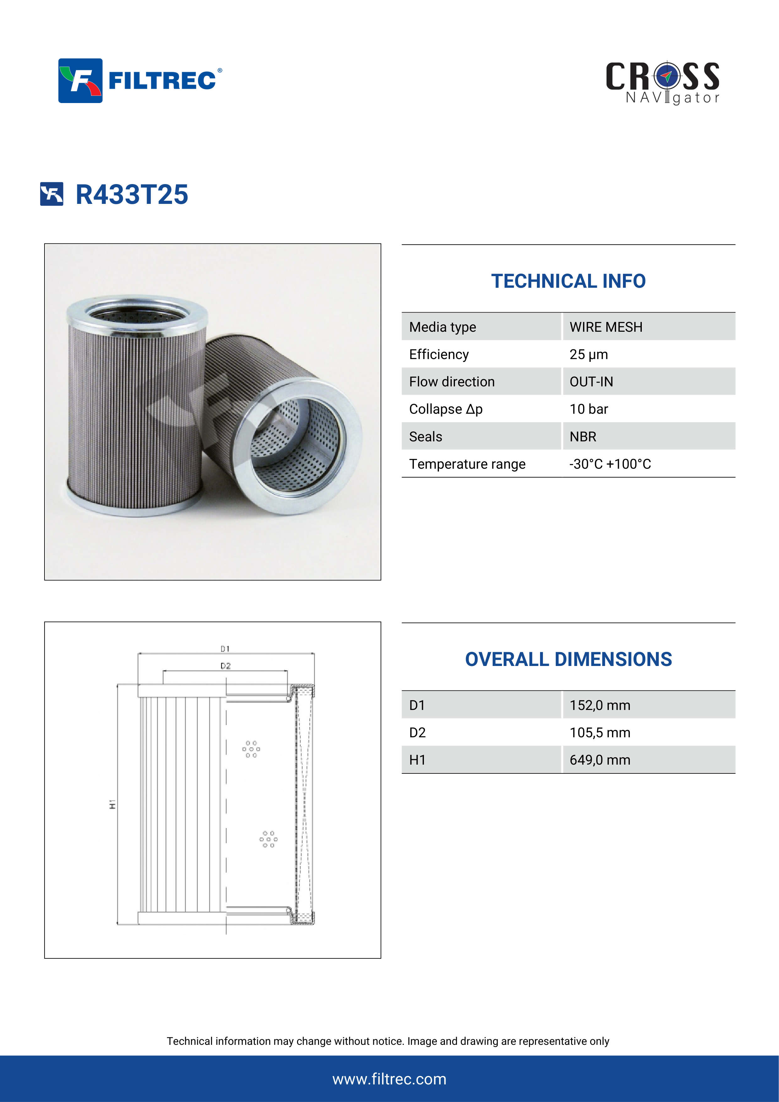 Genuine Filtrec R433T25. This Filtrec element is designed to meet or exceed the quality and performance of brand OEM’s ensuring superior filtration performance and long-lasting durability.