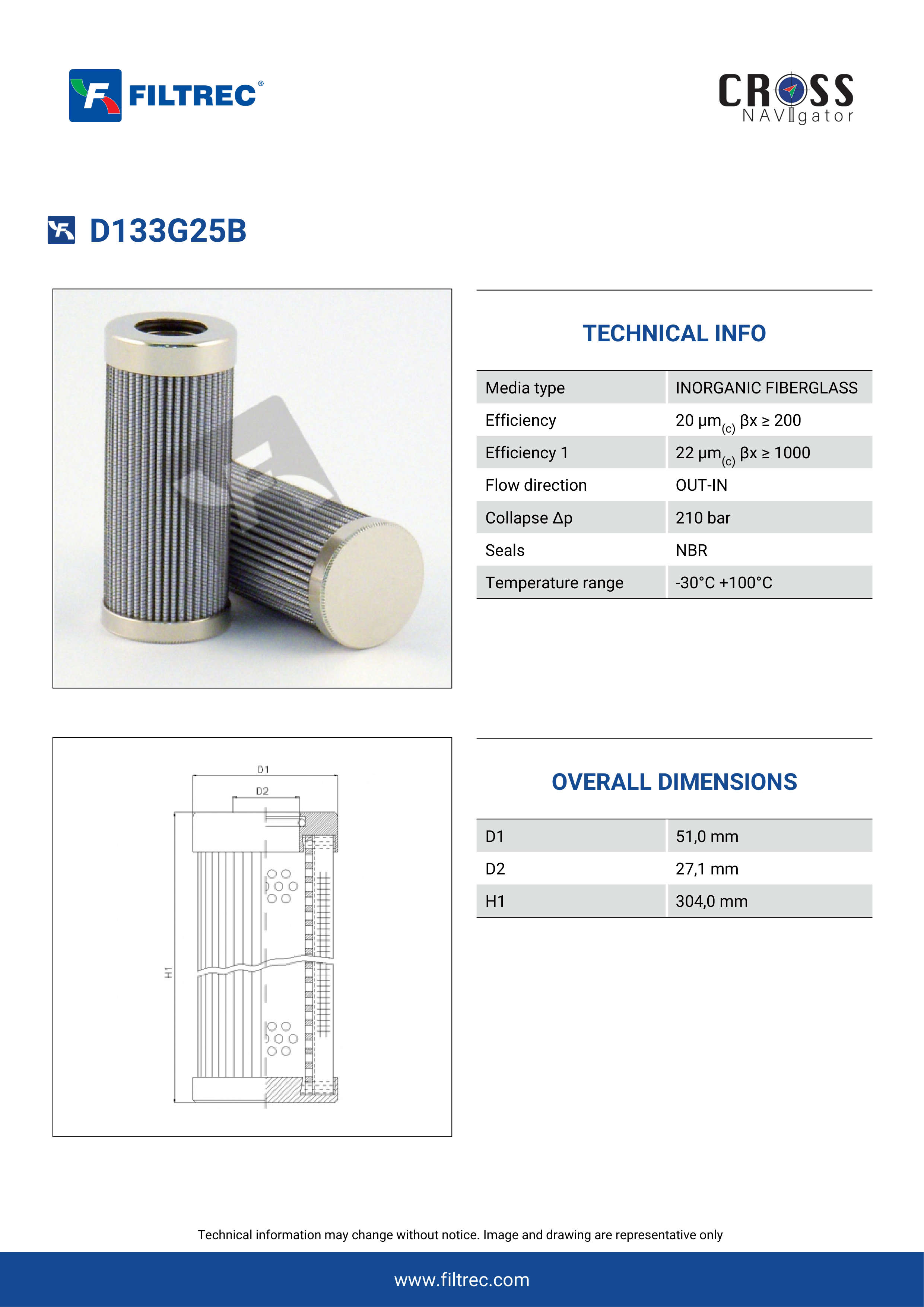 Genuine Filtrec D133G25B. This Filtrec element is designed to meet or exceed the quality and performance of brand OEM’s ensuring superior filtration performance and long-lasting durability.