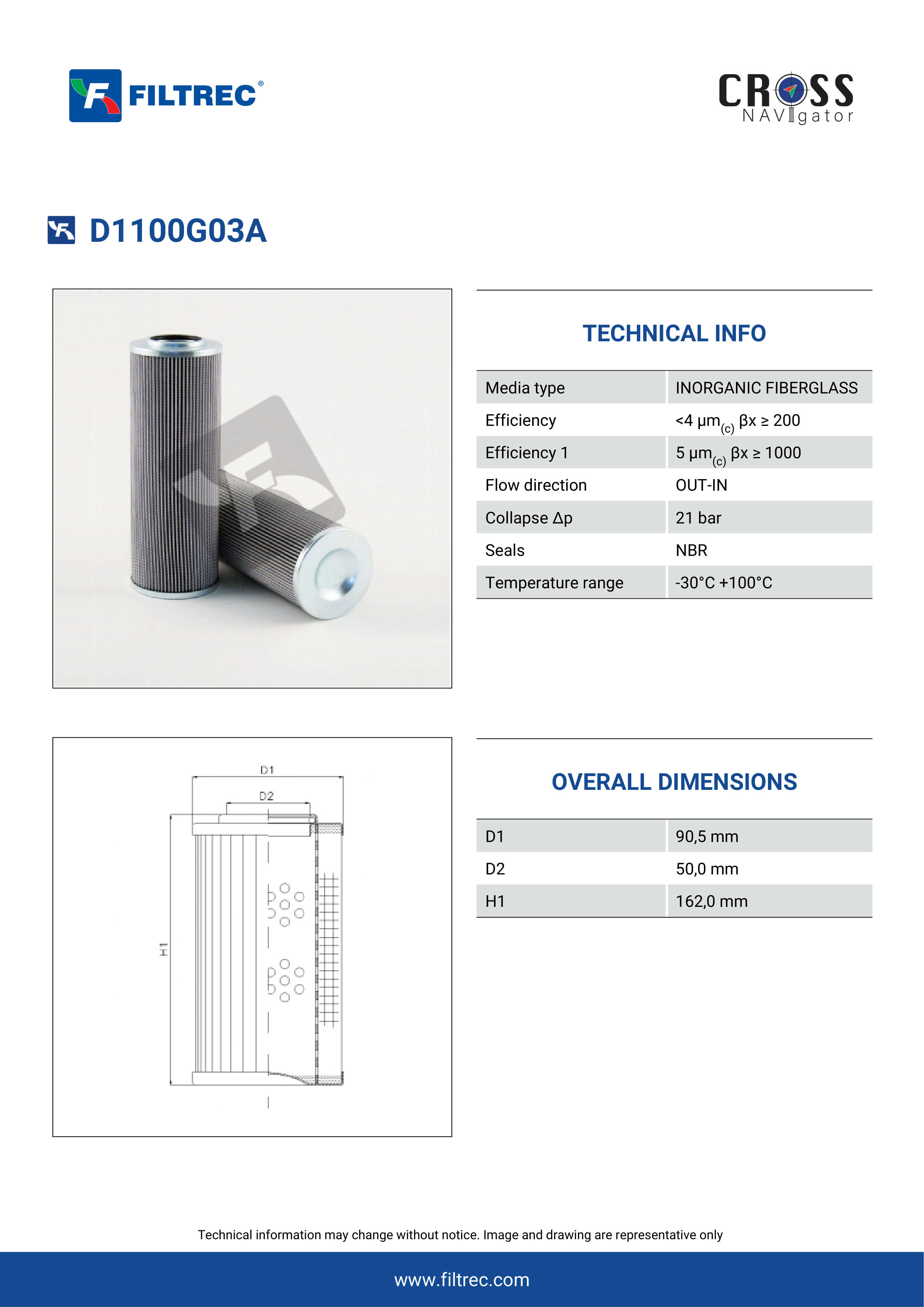 Genuine Filtrec D1100G03A. This Filtrec element is designed to meet or exceed the quality and performance of brand OEM’s ensuring superior filtration performance and long-lasting durability.