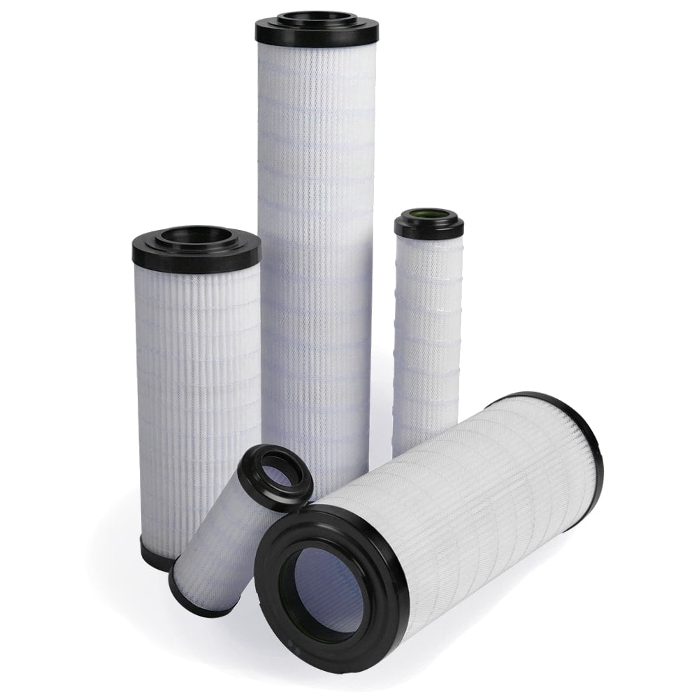 The efficiency of the element is shown using the Micron (µ) and Beta (β) ratings. The micron rating indicates the size of the particle being filtered and the beta rating the efficiency, calculated as 1/β.