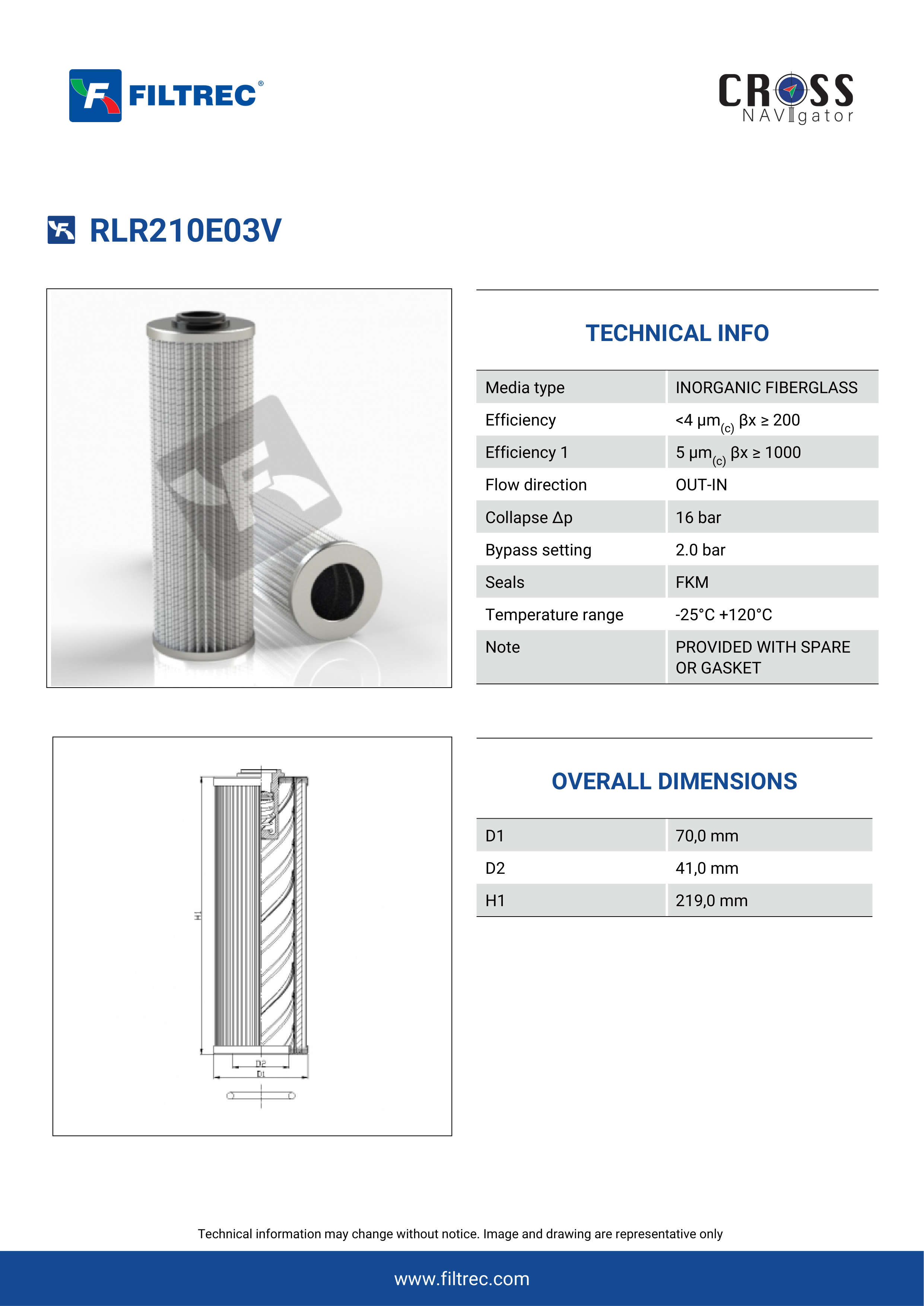 Genuine Filtrec RLR210E03V. This Filtrec element is designed to meet or exceed the quality and performance of brand OEM’s ensuring superior filtration performance and long-lasting durability.