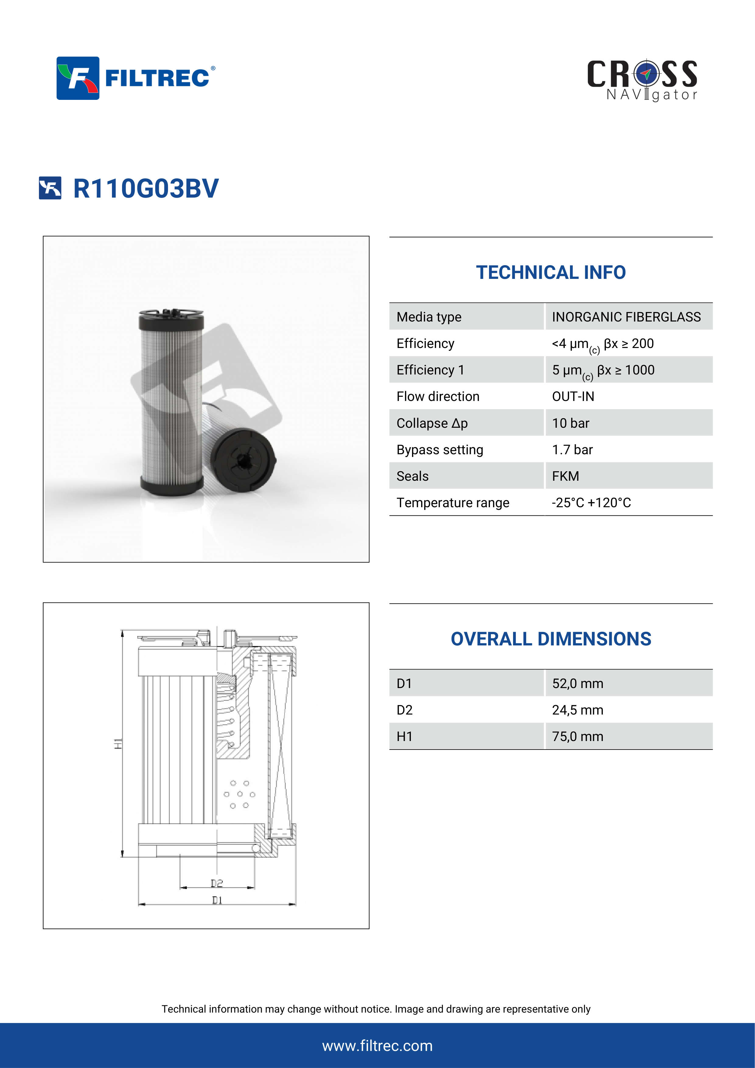 Genuine Filtrec R110G03BV. This Filtrec element is designed to meet or exceed the quality and performance of brand OEM’s ensuring superior filtration performance and long-lasting durability.Engineered with their high performance media and a durable design, the R110G03BV provides reliable and consistent performance over its lifespan, even in harsh operating environments. When you order from FilterFinder, you can trust that you are getting a reliable and high-quality replacement filter that will keep your system running smoothly.