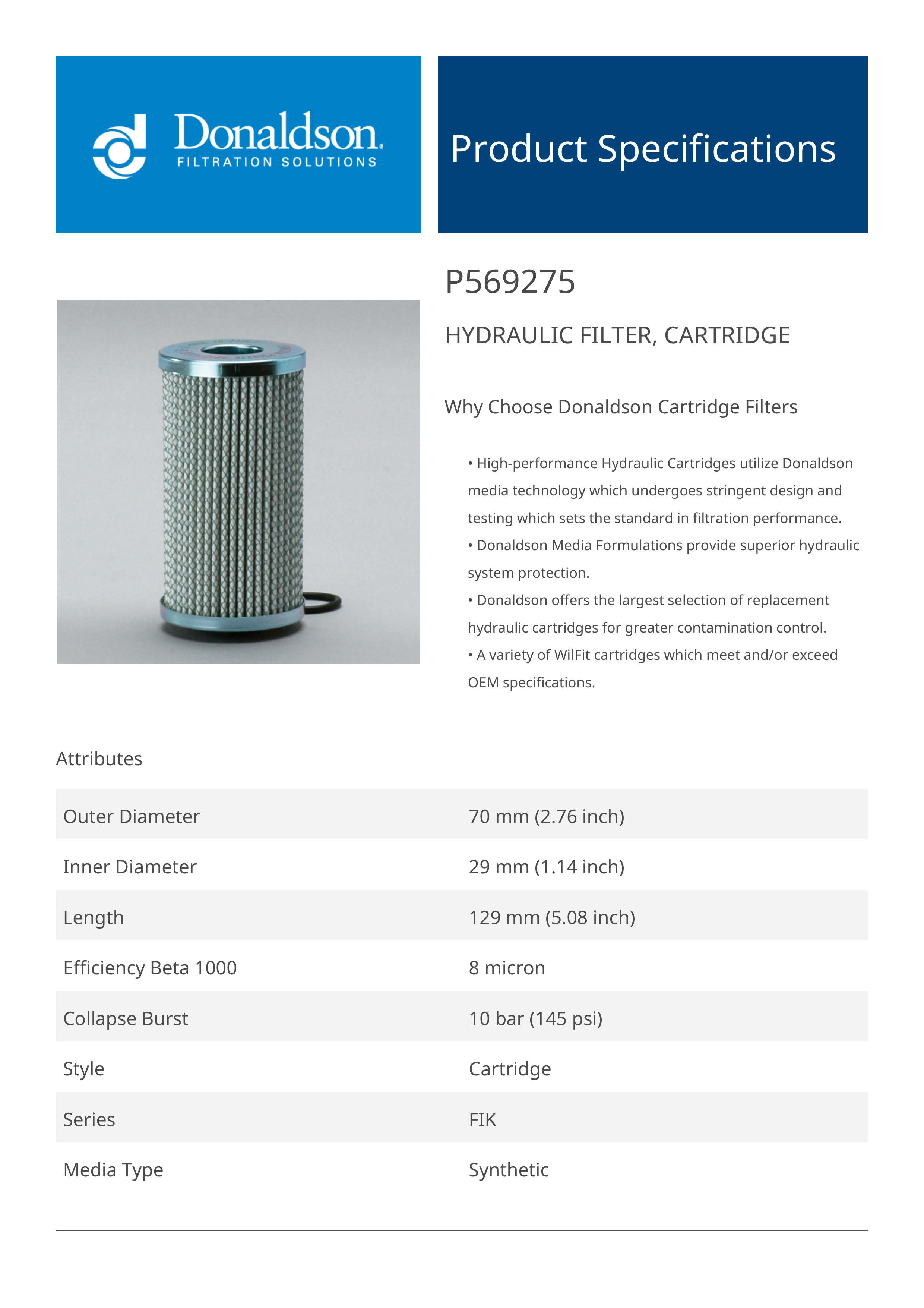 Donaldson P569275 Hydraulic Filter, Cartridge | Replaces the Parker 943712Q