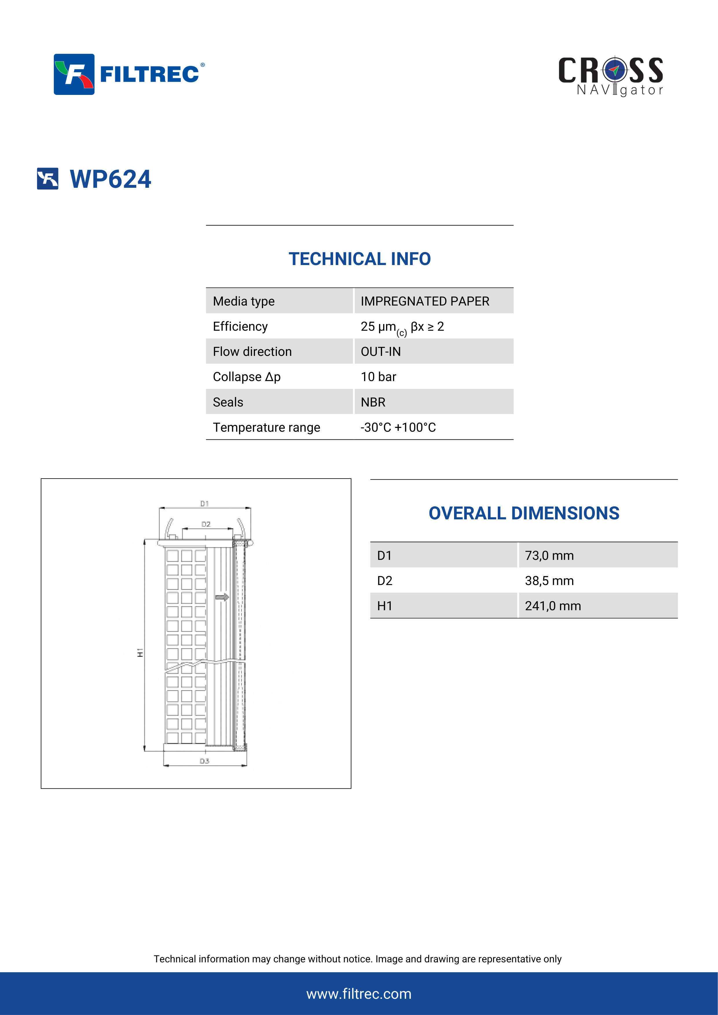 The efficiency of the element is shown using the Micron (µ) and Beta (β) ratings. The micron rating indicates the size of the particle being filtered and the beta rating the efficiency, calculated as 1/β.